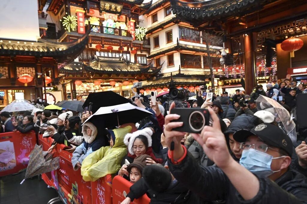 从广东中山专程赶来的黄小姐,带着年事已高、平日鲜少出门的外婆,早早守在了亮灯仪式的前排。“我们在前排,等了20分钟。”黄小姐说,“3-2-1,灯亮起来,很震撼,很有仪式感。”她提前一个月就做好了攻略,“很早就听说豫园灯会做得很好,这次趁寒假,一定得带外婆来看一下。”在她看来,与广东传统年俗相比,“上海的灯很新潮,很有本土特色”。像她们一样,众多游客冒雨围聚,共同见证了灯火渐次点亮“大豫园”的激动时刻。