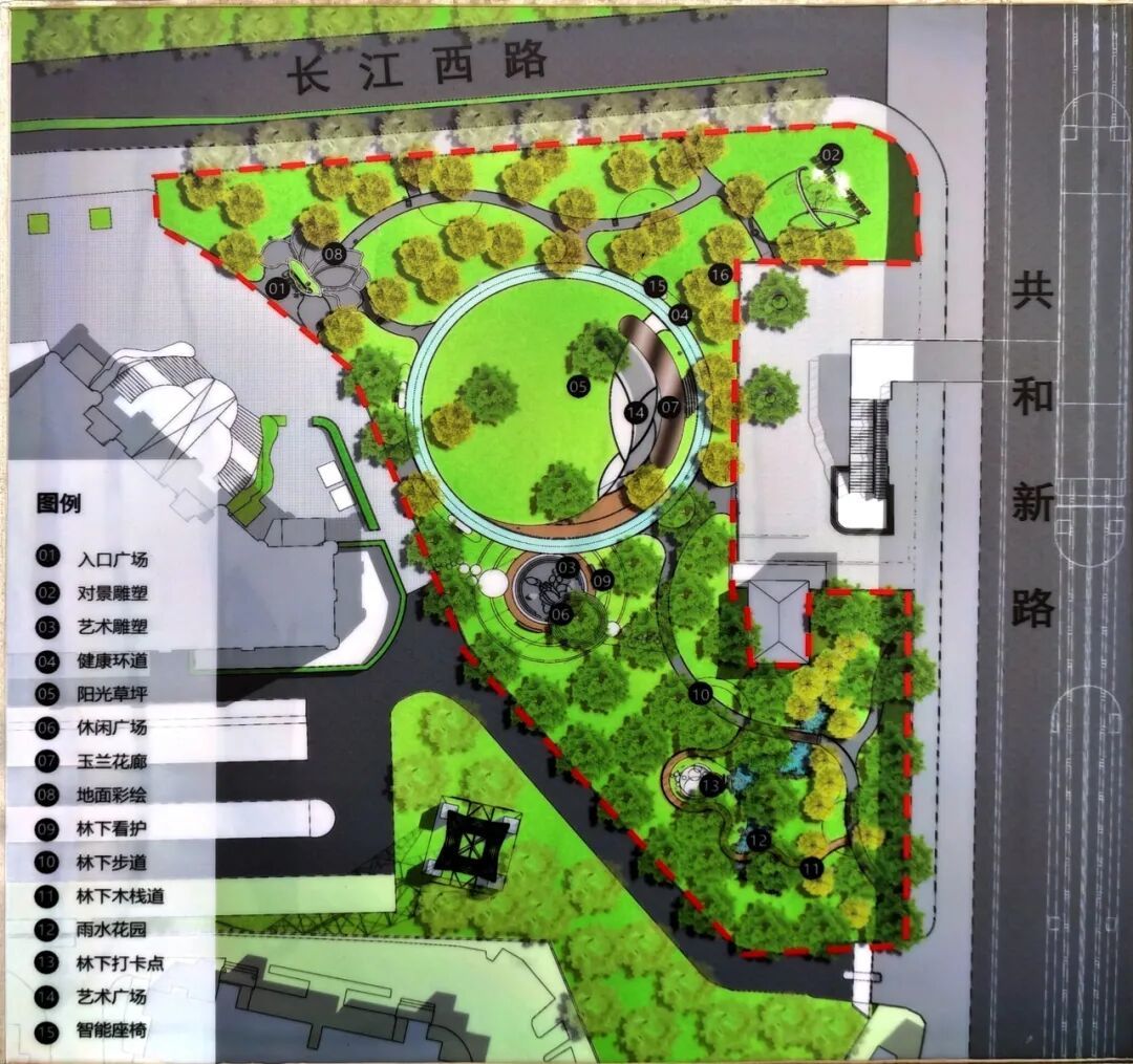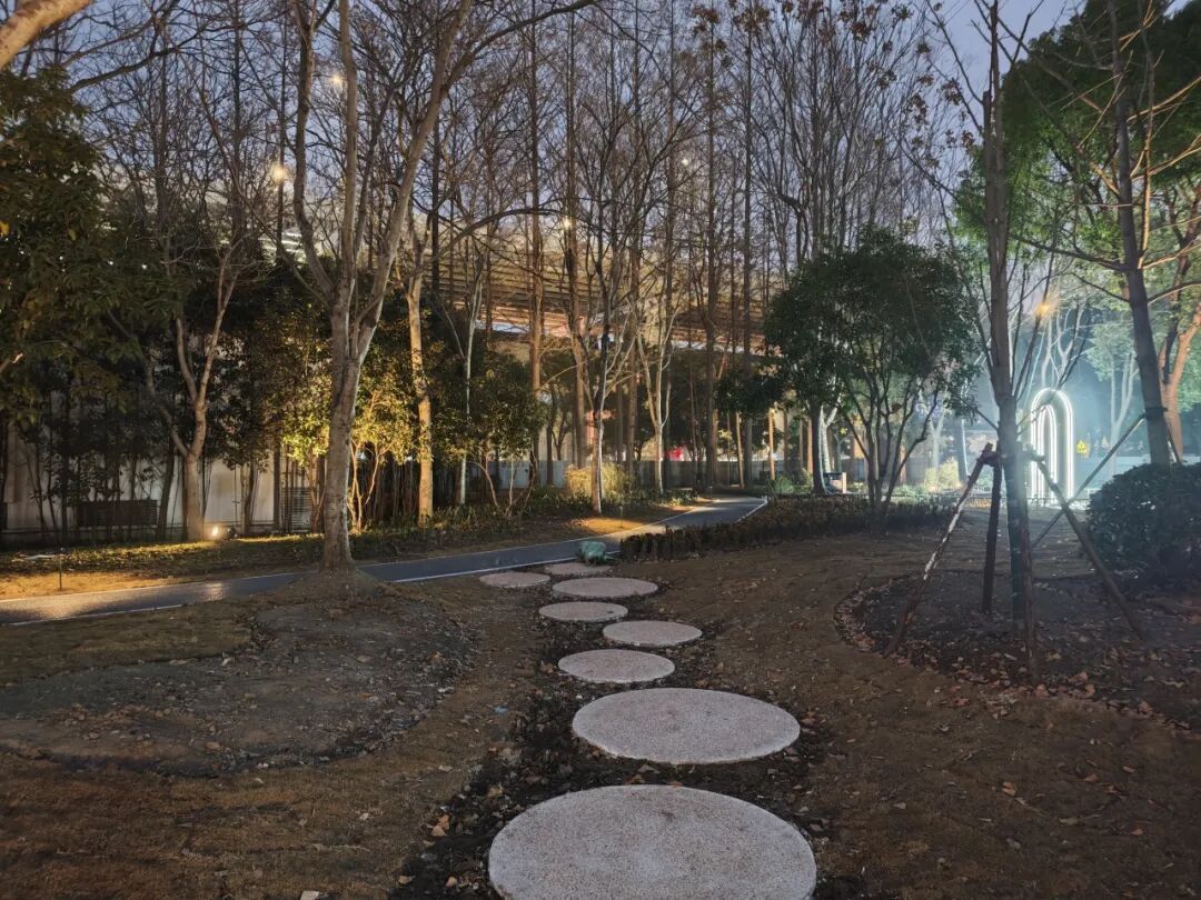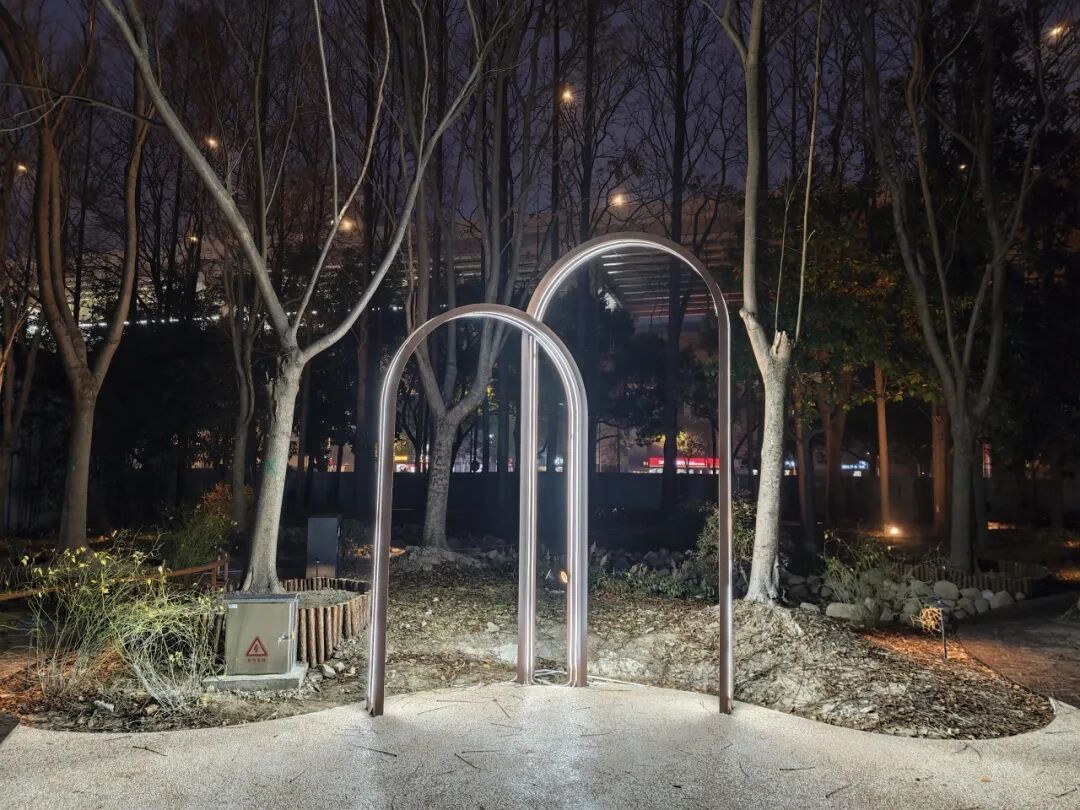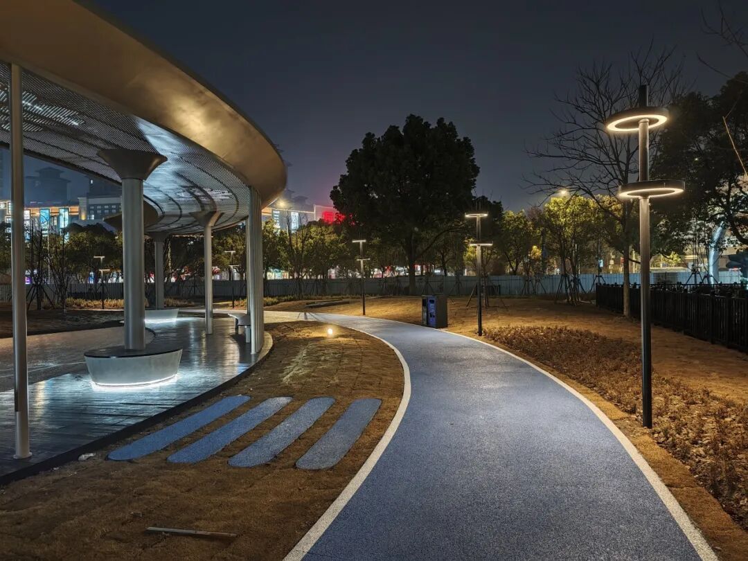 位于共和新路与长江西路交会处的“玉兰花语园”口袋公园以上海市花“白玉兰”为主题,不仅是一处可供休憩的绿地,更是一座融文化、休闲、社交于一体的“城市绿色客厅”。在这里,忙碌的都市节奏可稍作停歇,自然与城市生活得以温柔衔接。 玉兰精神,融入每一处景观。公园以白玉兰“开拓、向上、高贵、坚韧、博爱”的精神品格为脉络,借助玉兰花团等中国传统经典纹样,通过景观雕塑、地面彩绘、入口标识、艺术廊架、主题植物等形式具象呈现,将玉兰之美与上海城市气质相融合。 在功能布局上,公园充分考虑全龄段市民的需求,打造了多元复合的活动场景。 城市客厅:阳光草坪与景观廊架,适合休闲聚集 林下雨水花园:生态与美观兼具 艺术打卡点:适合拍照、休憩 公园保留了原有长势良好的香樟、水杉等乔木,新增白玉兰主题树种,并搭配四季常绿、耐阴观赏的草花与地被植物,打造层次丰富、季相分明的植物景观。虽然目前时值冬季,草木尚未繁花似锦,但园内绿植已基本栽种完成,静待花期来临后渐次绽放其完整的景观效果。 公园重新梳理人行与车行流线,优化非机动车停放,提升铺装与照明,让公园与周边地铁、商业、居住区无缝衔接,停车空间更为规整,绿色出行更安全便捷。