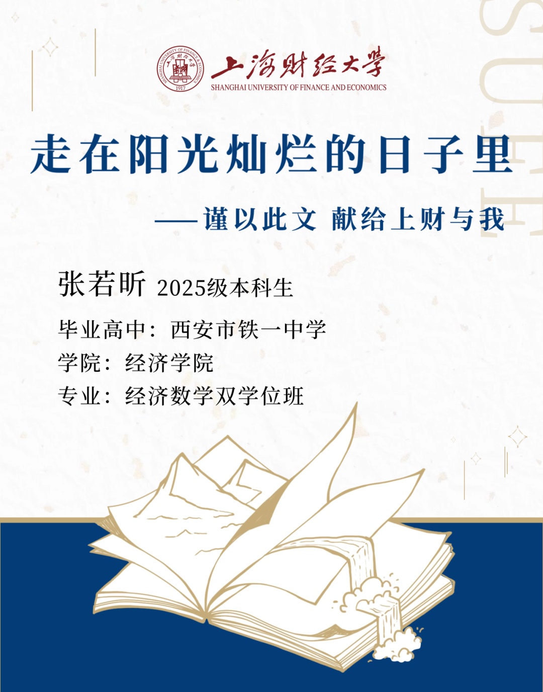 【编者按】星河尽明,其源在心。仰望星空,我们向往那份旷达与自在;躬身前行,方知自己亦是星辰,微光汇聚,终成璀璨。官微开设“SUFE·星河”专栏,让我们一同走进内心世界的 “星河”,锚定人生前行的方向,收获与万千星辰并肩同行的温暖力量,绽放属于 Sufers 的耀眼光芒。