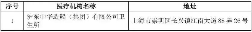 市医保局介绍,根据国家及本市定点医药机构和长期护理保险定点机构协议管理的有关规定,经市、区两级经办机构组织评估,拟将1家医疗机构、5家零售药店、2家护理服务机构纳入定点。其中,位于崇明长兴镇的沪东中华造船(集团)有限公司卫生所拟纳入医保定点医疗机构。