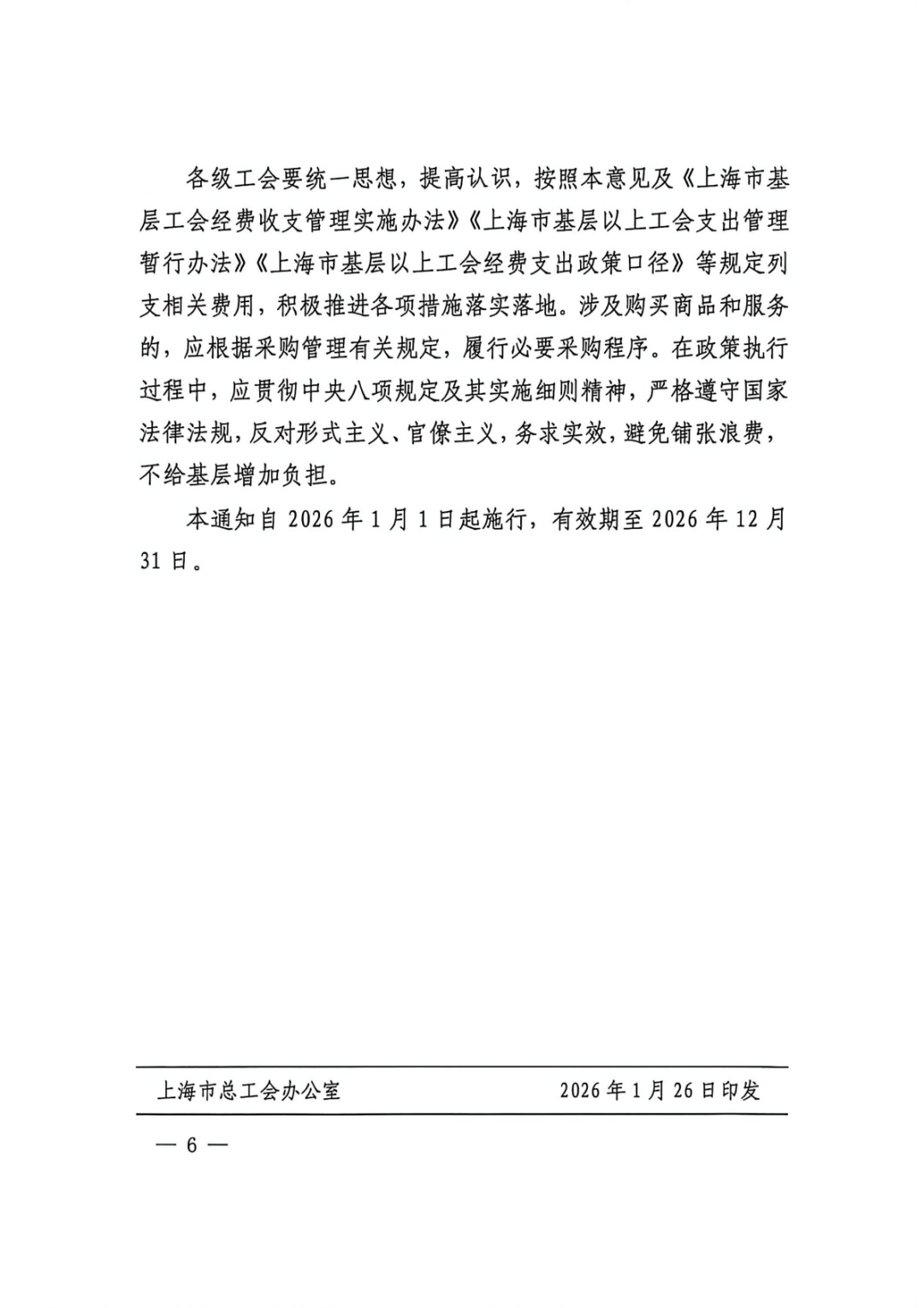 上海市总工会近日印发《2026年上海工会进一步促进和提升职工消费若干措施》的通知。通知自2026年1月1日起施行,有效期至2026年12月31日。