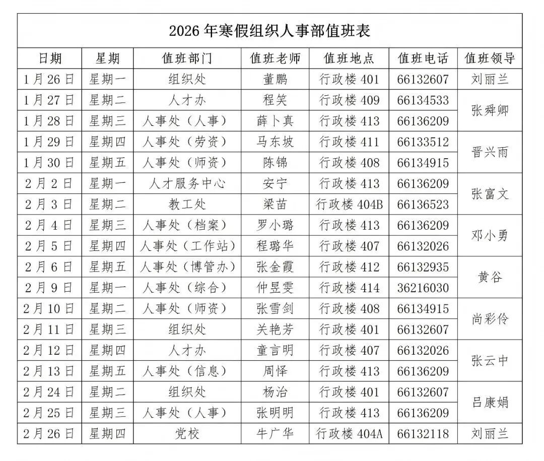 以上信息如有变动,以人事处网站2026年寒假值班安排为准:https://hr.shu.edu.cn/info/1029/8069.htm