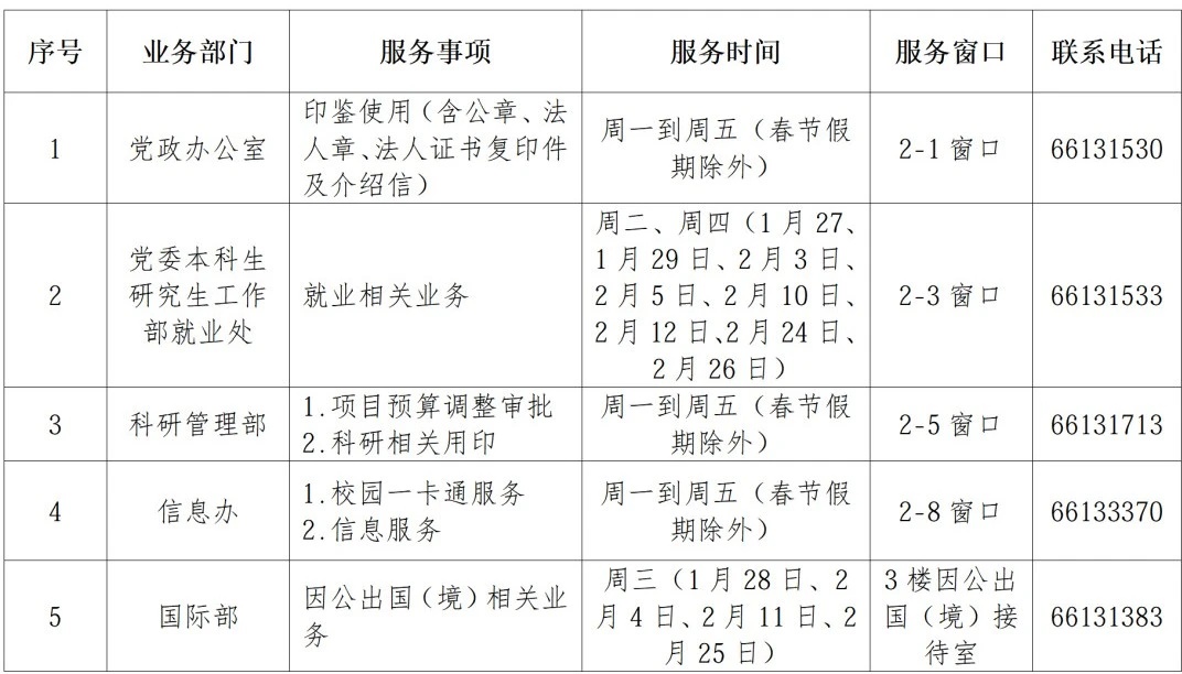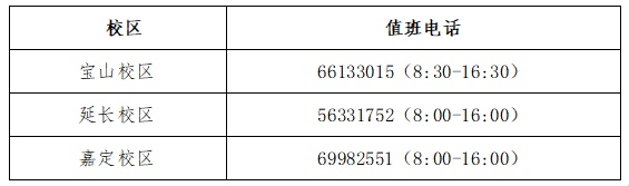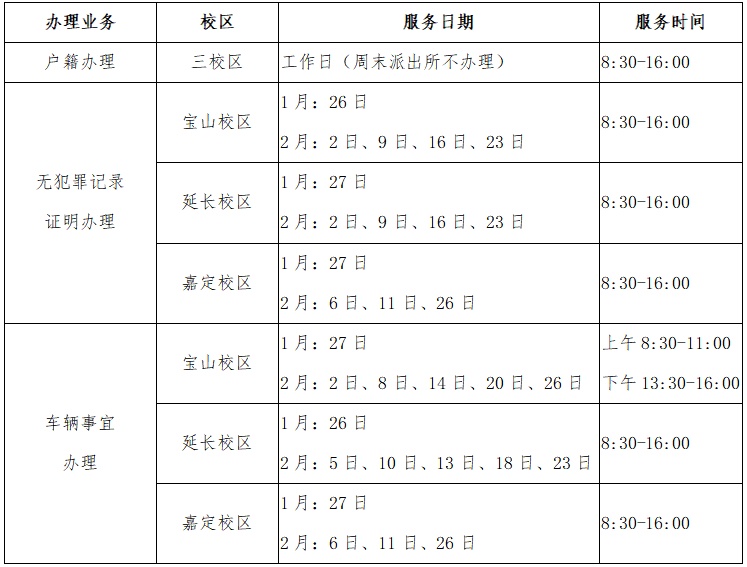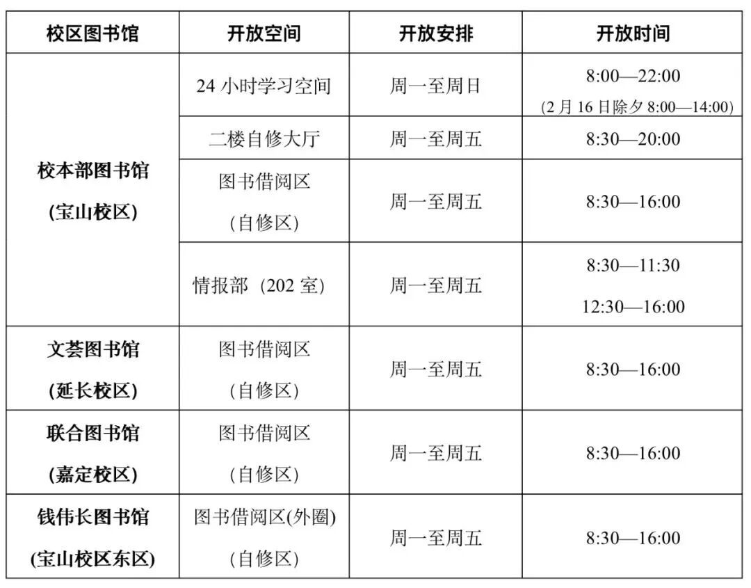 一站式服务中心(宝山校区):寒假期间每周星期一至星期五8:30-11:30,13:30-16:30(2026年2月14日-23日、2月28日不开放)。