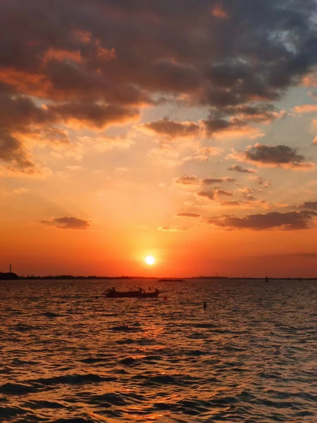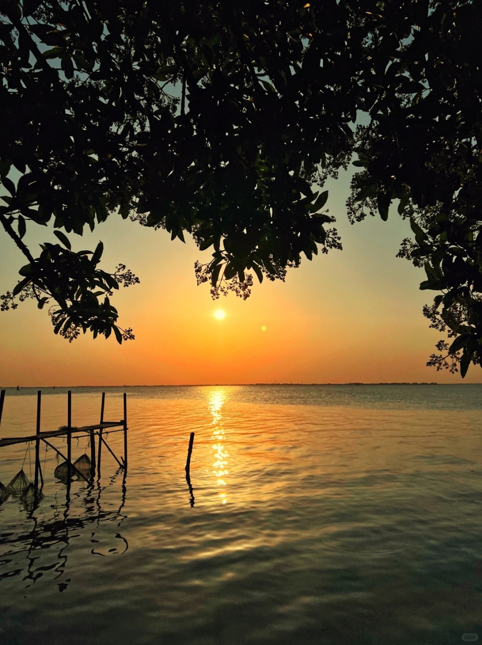 夕阳如同一位羞涩的画家,将天空和湖面染成了温柔的橘红色,大片的“橘子海”让时间仿佛凝固,整个世界都变得柔软而宁静。