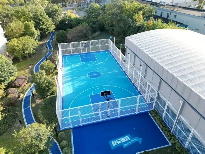 一片室外篮球场和一片电动可开启顶棚篮球场