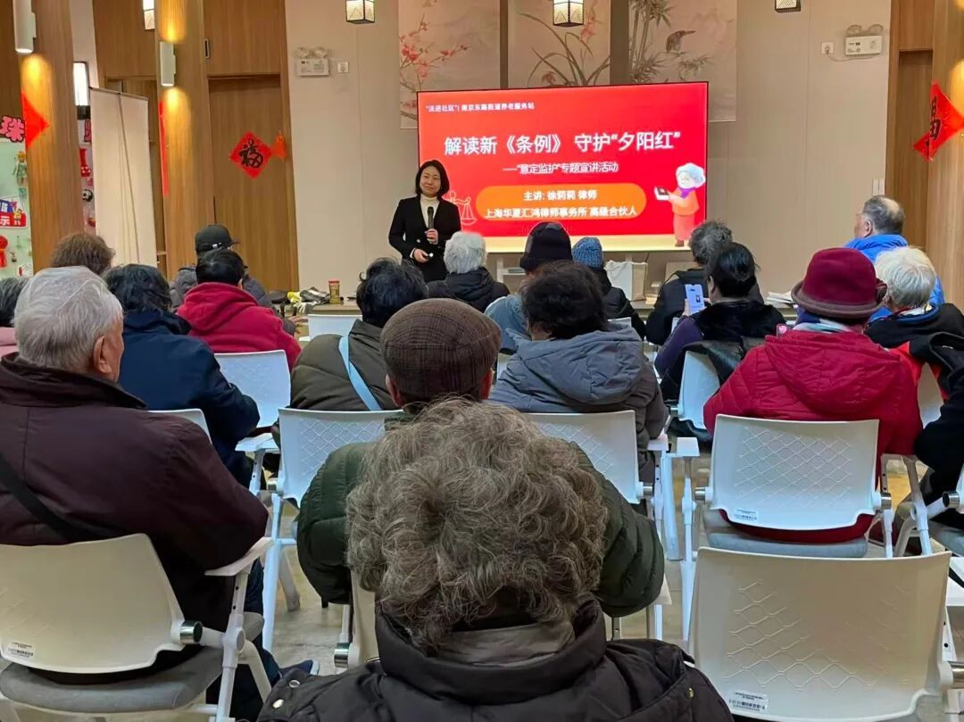 南京东路街道于1月下旬启动“法治护航·银发解忧”意定监护系列普法讲座,特别邀请了多家律所中具备老年人权益保护、民事监护、婚姻家事等相关法律实务经验的专业律师,结合《中华人民共和国民法典》第三十三条、2025年新修订的《上海市老年人权益保障条例》,以及2026年1月1日起正式施行的《上海市人民政府办公厅关于推进实施老年人意定监护制度的若干意见(试行)》等法律法规,帮助社区居民了解如何用一纸协议,守护好自己晚年的照护与尊严。