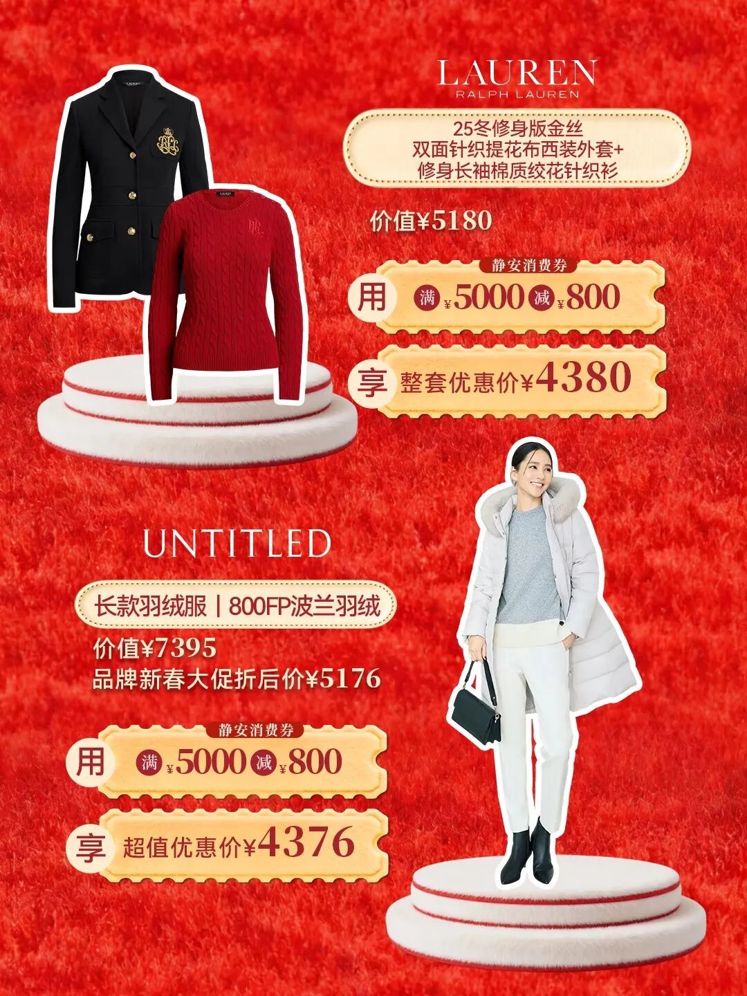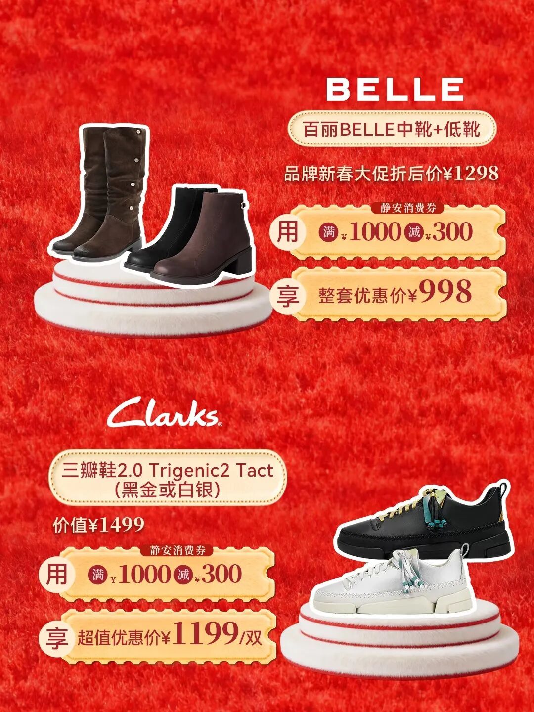 新春礼遇2件8折(优惠仅限店内指定商品,详洽店员),更能叠加1000减300消费券,享受双重惊喜。