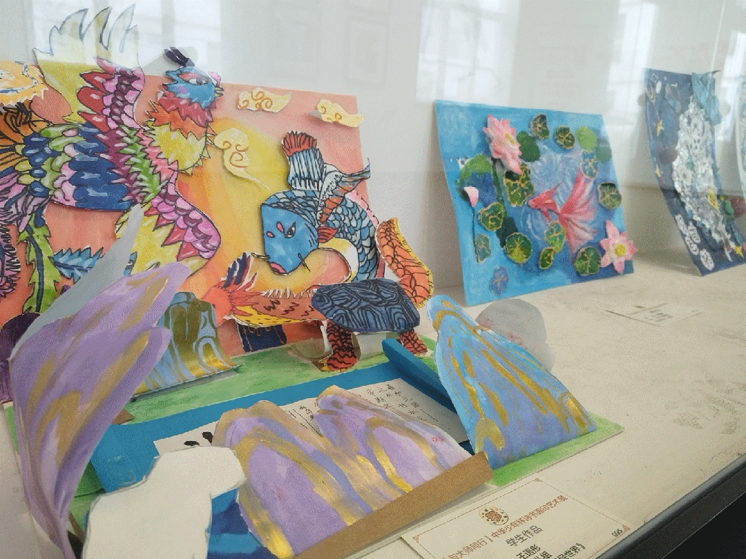 哪吒闹海的灵动、仿点翠凤冠的逼真、生煎包的烟火气……展厅内,100余件绘画、书法、手工作品错落陈列,以艺术为载体将党的二十届四中全会精神宣讲融入其中,让孩子们在创作与观赏中感悟时代内涵,让“立德”理念在潜移默化中浸润心灵。