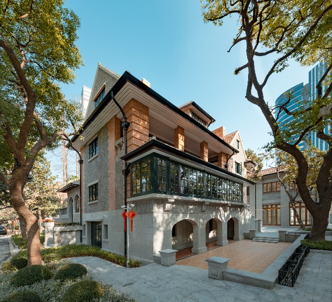 如今,更值得一提的是,愚园路1320弄10号这座集人文、历史与时尚于一体的城市文化名片,随着历史建筑焕发新生,建筑前的绿地也完成开放共享,让昔日“藏于深闺”的历史建筑融入城市公共空间,也让市民近距离感受这座百年建筑的斑驳肌理,实现“商业和艺术”“生活和艺术”“旅游和艺术”的跨界融合愿景。