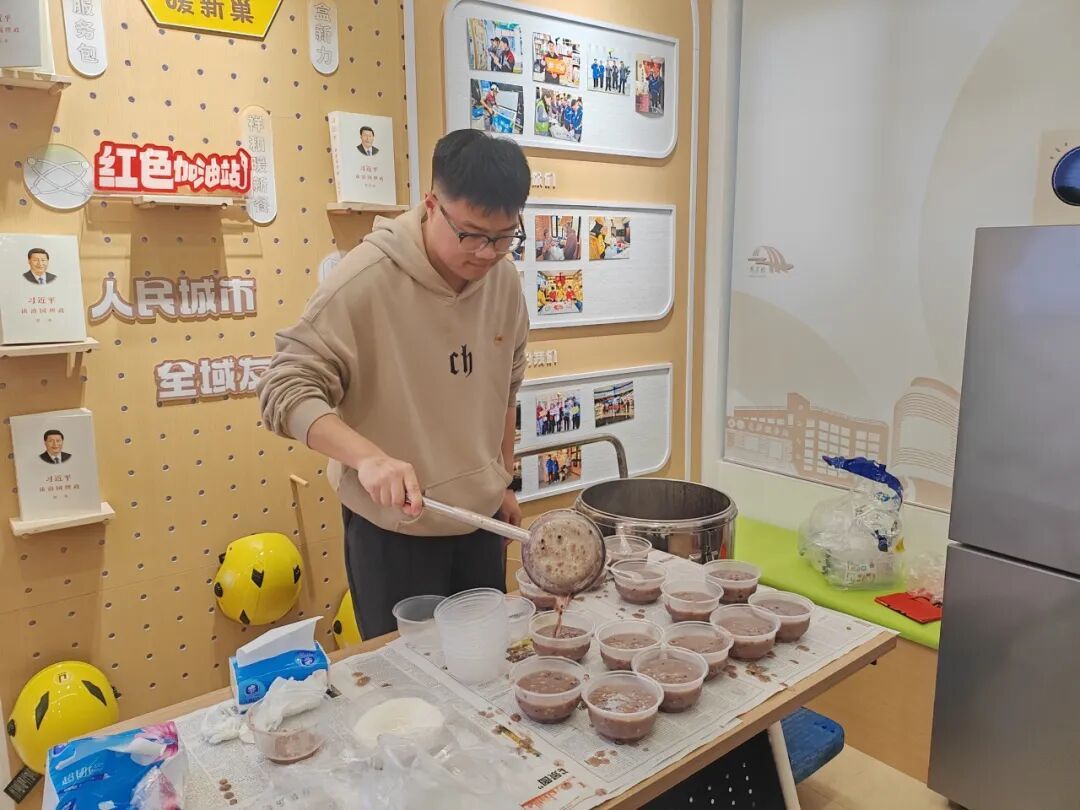 下午两点,中心内已是一派暖意融融的景象。由邻近祥和食堂免费提供的腊八粥热气腾腾,第一时间送到前来的每位居民手中,驱散了冬日的寒意,也拉开了温馨市集的序幕。