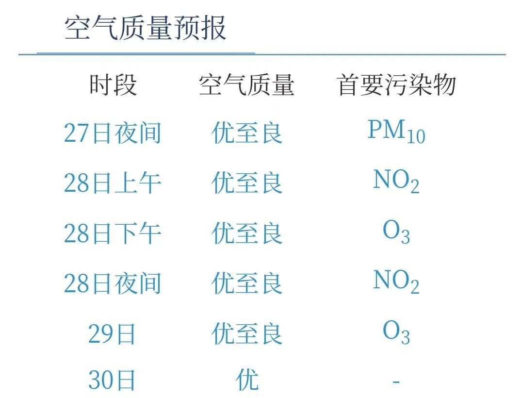今天夜间到后天空气质量优至良;