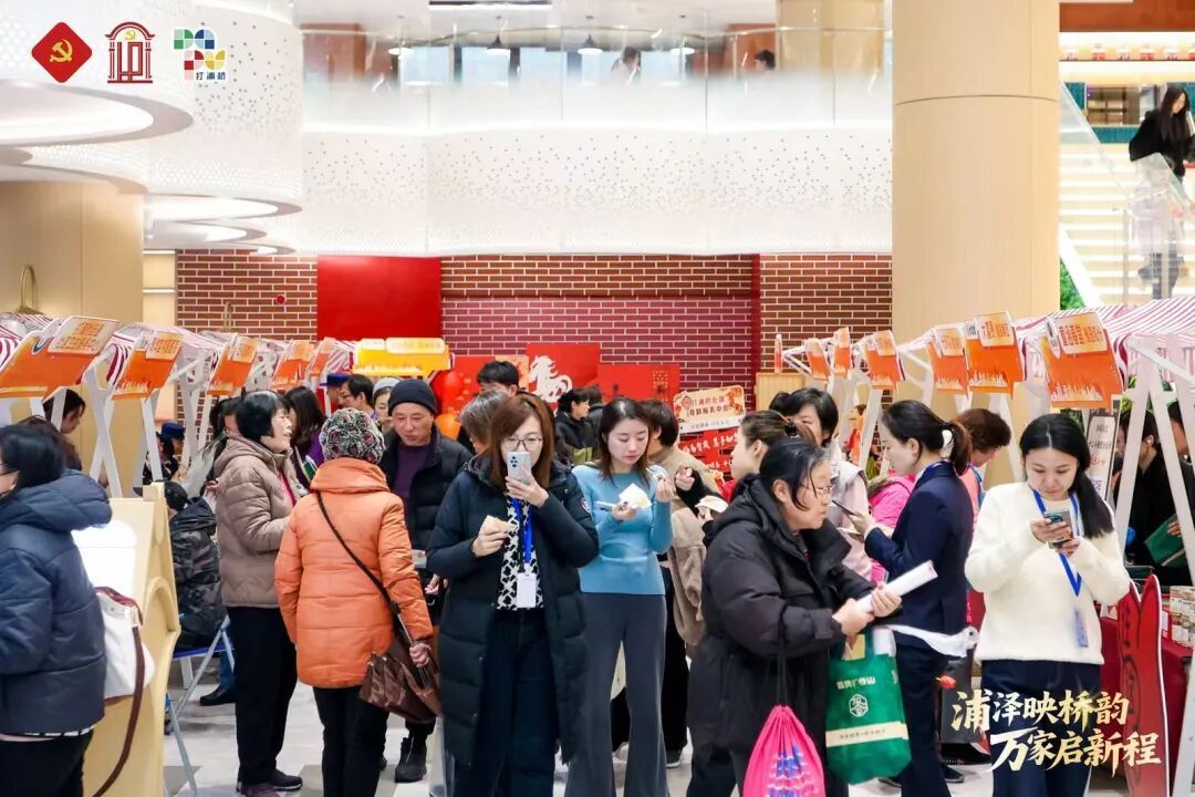 开业首日,一场新春市集热闹开场——红色的福字和春联可以带回家,还有富贵、光明邨、功德林、童涵春堂等老字号带来海派美食及工艺手作……不仅唤醒了记忆中的年味,更以文化为媒,激活消费热情,各类年味食品吸引很多社区居民特地过来买买买。“我就住在边上,看到这里改造好全新开放了,特地过来看看。”家住桃源新村的顾阿姨告诉记者,没想到党群中心也有老字号食品优惠,希望年前多搞“展销会”。