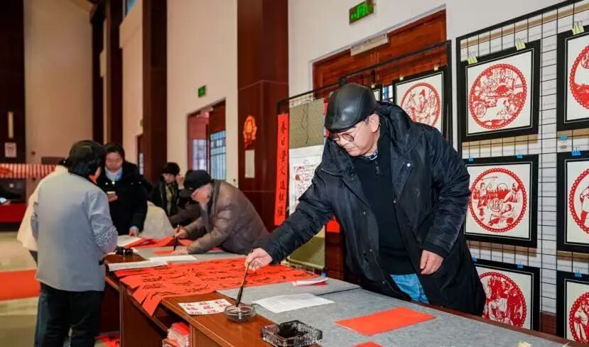 活动以“群众学、群众演、群众看、群众乐”为理念,打造出沉浸式、互动式的非遗体验场景。下午1点刚过,活动外场的非遗乐活新春市集便已热闹开锣。“非遗手作”摊位上,水印版画、剪纸等非遗手作,焋糕等非遗美食琳琅满目,既有社区教育学员的习作,也有非遗代表性传承人的精品力作,不少市民驻足观赏、品尝美食。 在活动内场,主题展演精彩纷呈。吴歌(田山歌)传承人登台献艺,悠扬婉转的歌声带着水乡的灵秀,仿佛将观众带入了青浦的田间地头,台下不时响起阵阵掌声;金泽镇淀西村老年舞狮队带来的新春舞狮,红金相间的狮子随着鼓点跳跃腾挪,摇头摆尾间尽显喜庆;二胡独奏《弹乐》弓弦流转,清雅韵味萦绕全场,观众沉浸在悠扬的乐声中;船拳非遗社团的展演气势十足,表演者动作刚劲有力,一招一式展现着船拳的刚健之美,彰显了非遗传承的青春力量;沪剧《绣出无限好风光(金绣娘)》等节目轮番登场,展现了青浦本土文化的独特魅力。 主题展演落下帷幕后,书法家们铺好红纸、备好笔墨,现场挥毫创作,为市民写春联送福气。一幅幅寓意吉祥的春联新鲜出炉,市民们排着长队,挑选着心仪的春联,脸上洋溢着幸福的笑容。“能领到书法家手写的春联,特别有年味儿,还能感受到传统文化的魅力,太有意义了!”一位领到春联的阿姨开心地说道。据了解,本次迎春送福活动共准备了200余幅春联福字,全部免费赠送给社区居民。 朱家角成教集团总校长戚新欣表示,希望通过此次村晚让非遗从课堂走向生活,让传统文化从传承走向共享,持续深化社区教育与非遗保护的融合路径,让青浦非遗在活态传承中焕发新生,让传统文化以更鲜活、更贴近生活的方式,走进千家万户,助力乡村文化振兴与区域协同发展。 记者:李双玖(名优) 摄影:李双玖(名优)