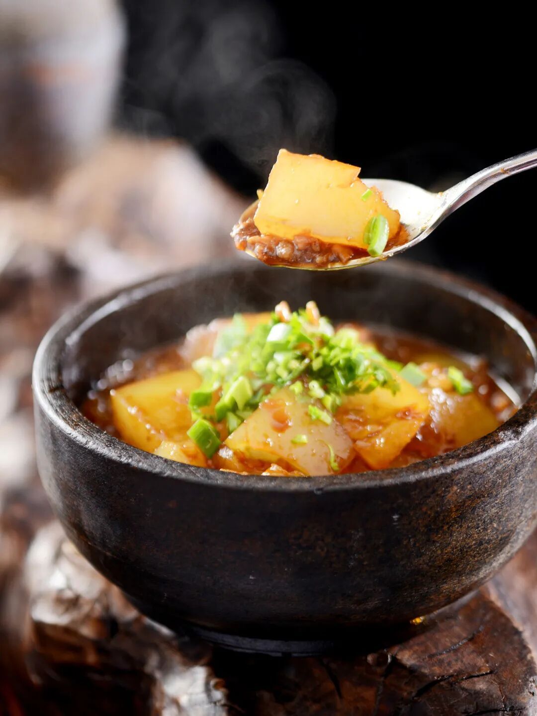 石锅荔浦芋:芋头的绵密撞上石锅的炙热,慢煨出琥珀色的温暖。筷子轻划,流心馅如金浆漫溢,是流心的丝滑,更是石锅锁温下的暖心暖意。每一口都烫帖到心底~