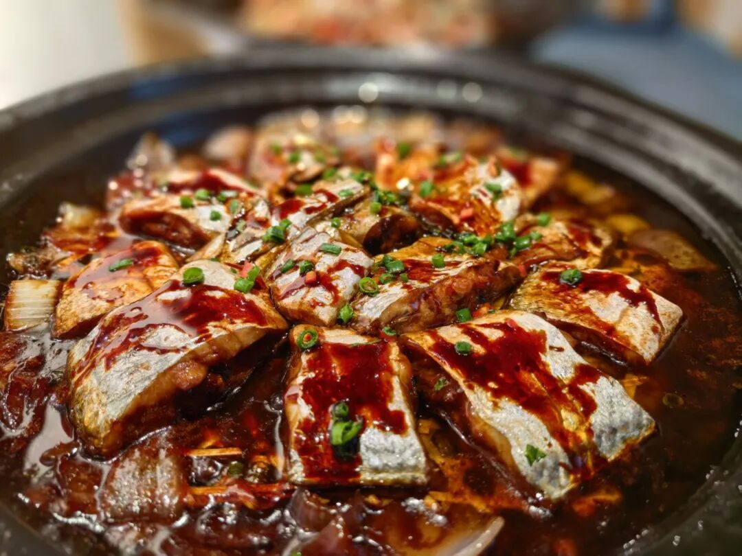 油浸宁波带鱼:鲜选带鱼秘制酱汁油浸,红亮酥软,咸鲜入味,刺少肉嫩,一口下去满口鲜醇,下饭超绝!