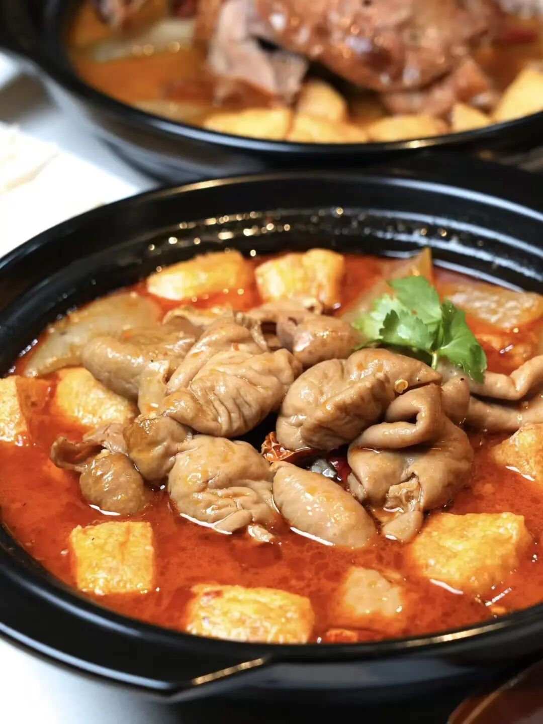 海鲜毛血旺:既保留川菜“麻辣鲜烫”的骨架,又注入东海、黄海优质海产的清甜本味。入口先感麻辣醇厚,随即海产鲜甜浮现——虾仁弹牙爽脆,鱿鱼柔韧微卷,鸭血嫩滑不腥,豆腐吸饱汤汁而绵软入味。辣而不燥,麻而不苦,鲜味通透,余味清爽回甘。