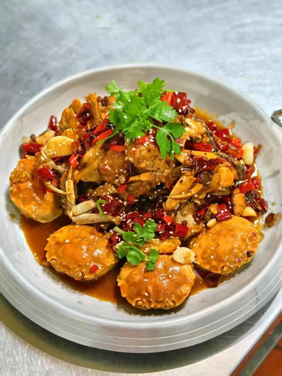 香辣蟹:香辣蟹鲜辣入味,蟹肉饱满紧实,蟹膏浓郁,秘制香辣酱汁裹满蟹身,鲜、香、辣层层叠加,嗦一口超上头!