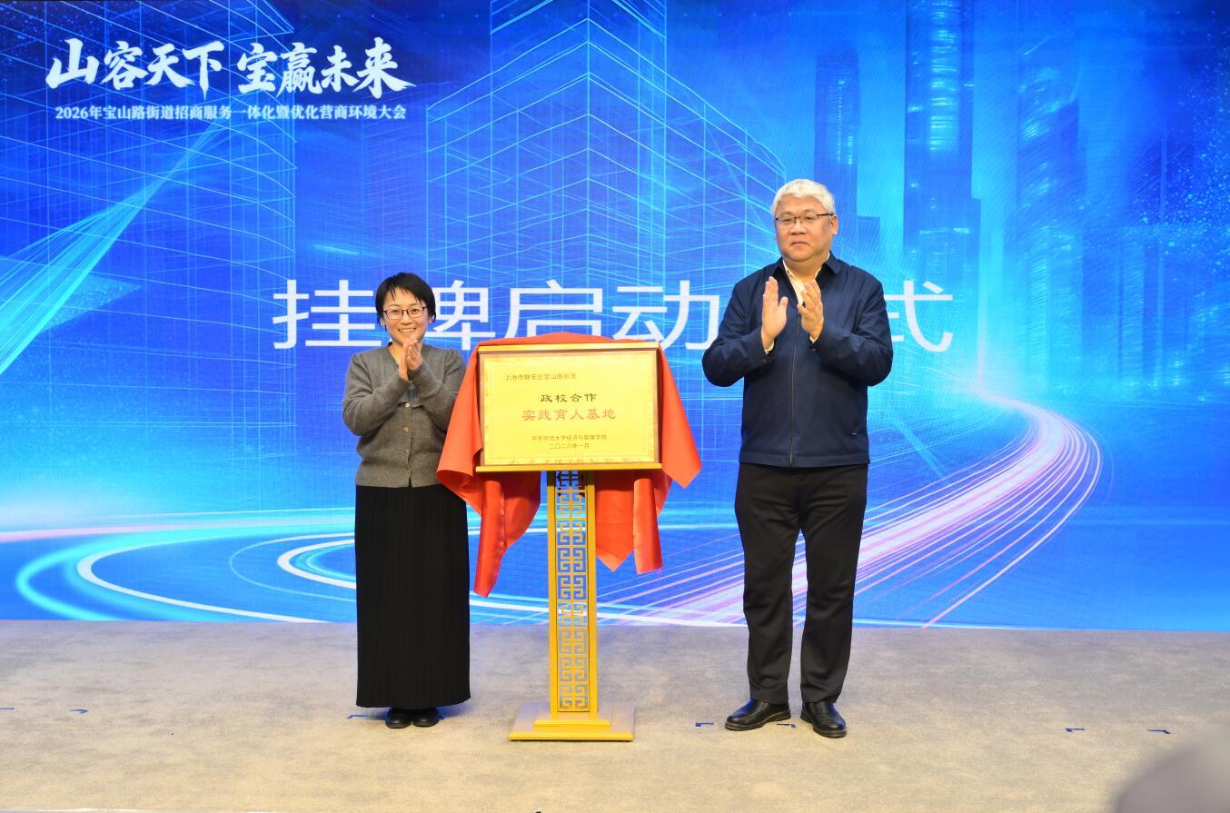会上,宝山路街道与华东师范大学经济与管理学院(含MBA学院)举行了“政校合作实践育人基地”揭牌仪式,携手推动“政-校-企”资源对接与人才共育。在项目签约环节,四项重点产业项目现场签约落地,彰显了企业对宝山路街道发展环境的认可与信心。签约后的路演分享进一步展示了项目的创新活力与发展潜力,描绘出区域产业多元融合、蓬勃发展的生动图景。