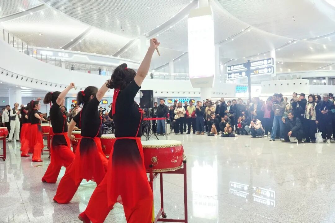 活动在永丰扁鼓队激昂的《走进新时代》中拉开序幕。铿锵鼓点如春雷滚动,瞬间吸引了旅客驻足,不少人举起手机记录下这候车厅里的别样热闹。紧接着,永丰立韵沪剧队带来《孙徐春经典曲目》联唱及《借黄糠·夫妻相商》选段,原汁原味的吴侬软语,勾起了许多旅客的江南记忆与乡情。