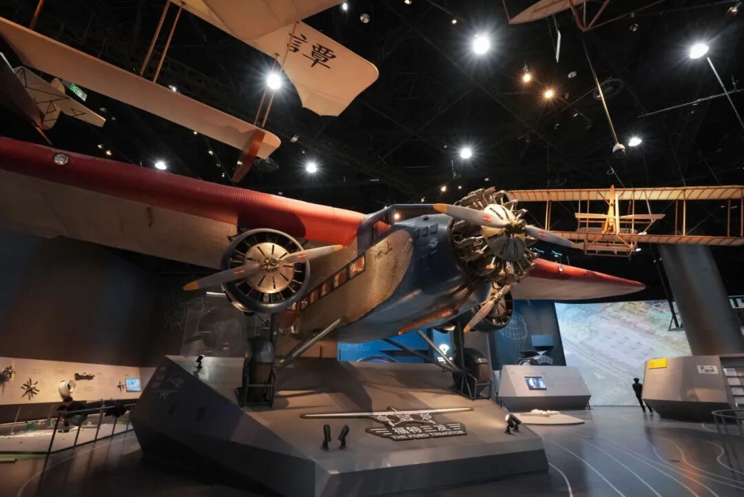 “飞行探秘”展区更是将“体验”推向了极致。一架长达15.32米的1:1高仿真复原“福特三发”客机以俯冲姿态悬停在展区中央,这是上海首条民用航线通航时的主力机型。观众不仅可以欣赏其极具视觉冲击力的外观,还能钻进内舱,落座于复古座椅,佩戴VR设备,“一键穿越”回上世纪30年代的上海,亲身感受早期商业航班的空中之旅。