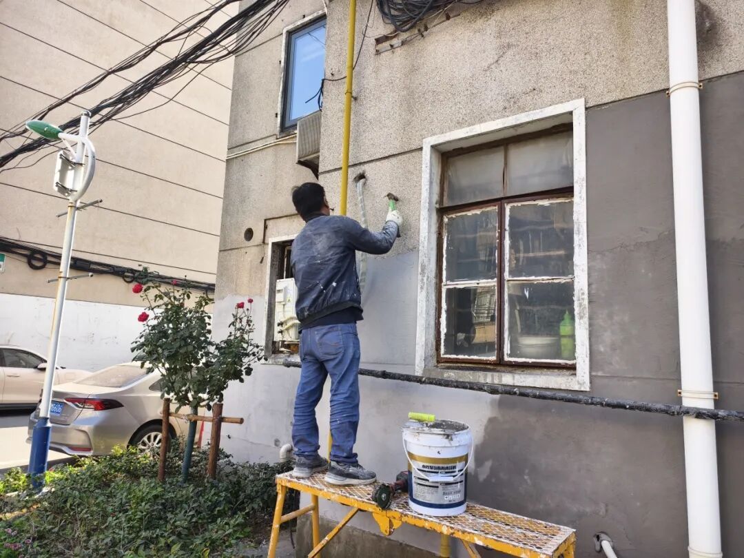 宝城新村作为建成多年的老旧小区,部分公共墙面因年代久远出现褪色、斑驳等问题,既影响社区整体颜值,也成为居民心中的“小遗憾”。宝城新村居民区党总支以“我为群众办实事”为契机,在“四百”大走访中了解到居民对于美化居住环境的迫切需求。