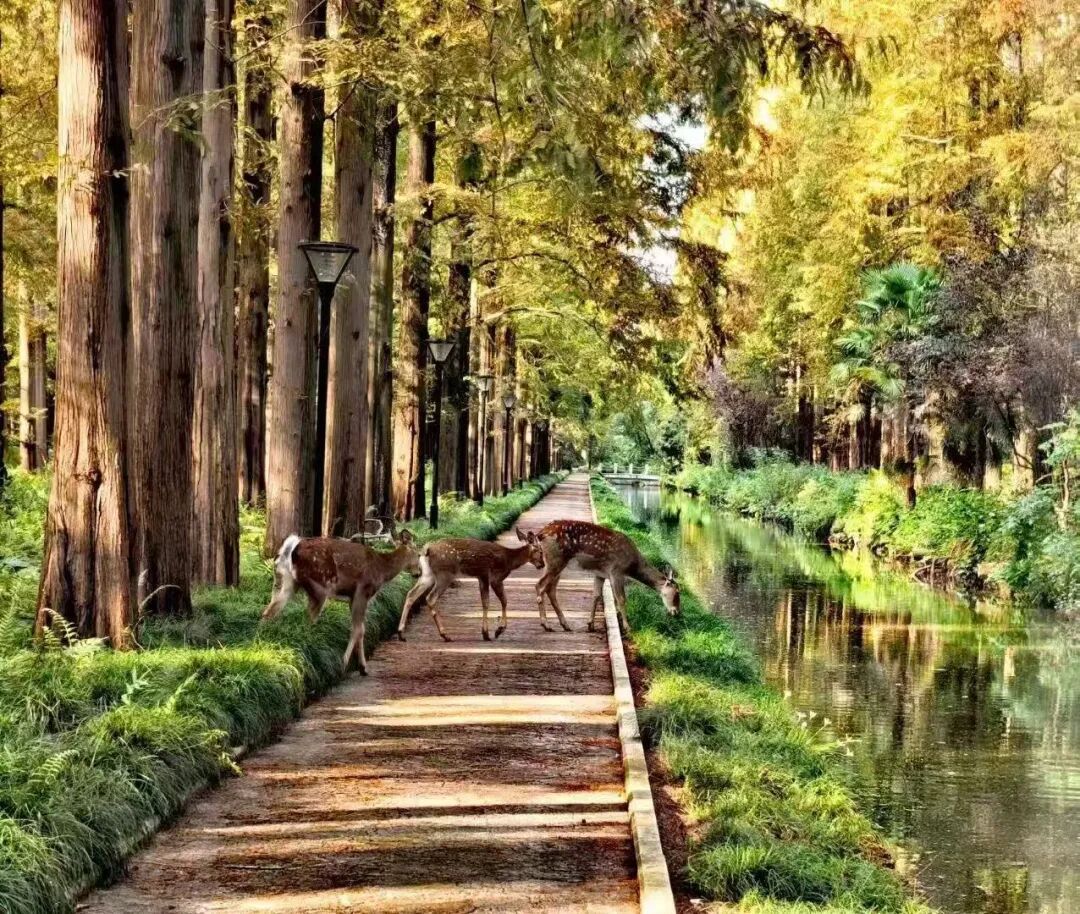 上海怡沁园度假酒店位于崇明岛中北部,占地500亩,以76%的高森林覆盖率构建起独特的自然取景地。酒店负责人沈冬梅介绍,该剧部分镜头取景于园区的湖泊、森林、别墅、林间步道等生态空间,“世界级生态岛”的自然底色成为剧集的“流量密码”。
