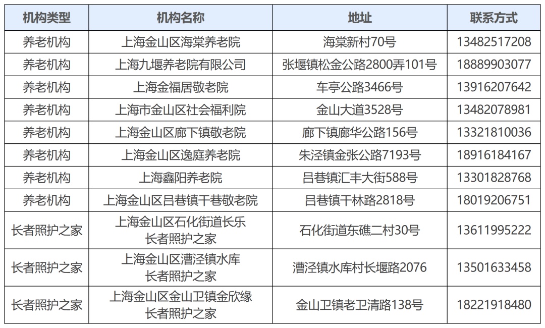 春节将至,我们将迎来史上最长的春节假期。为缓解部分家庭短期照护老年人的压力,满足因家政人员返乡、老人出院后短期康复或照护者需喘息休息而产生的托养需求,本市养老服务机构(含长者照护之家)将继续常态化开展短期托养服务,帮助家庭解决阶段性的照护困难。崇明区可提供春节假期养老“短托”服务的机构如下↓