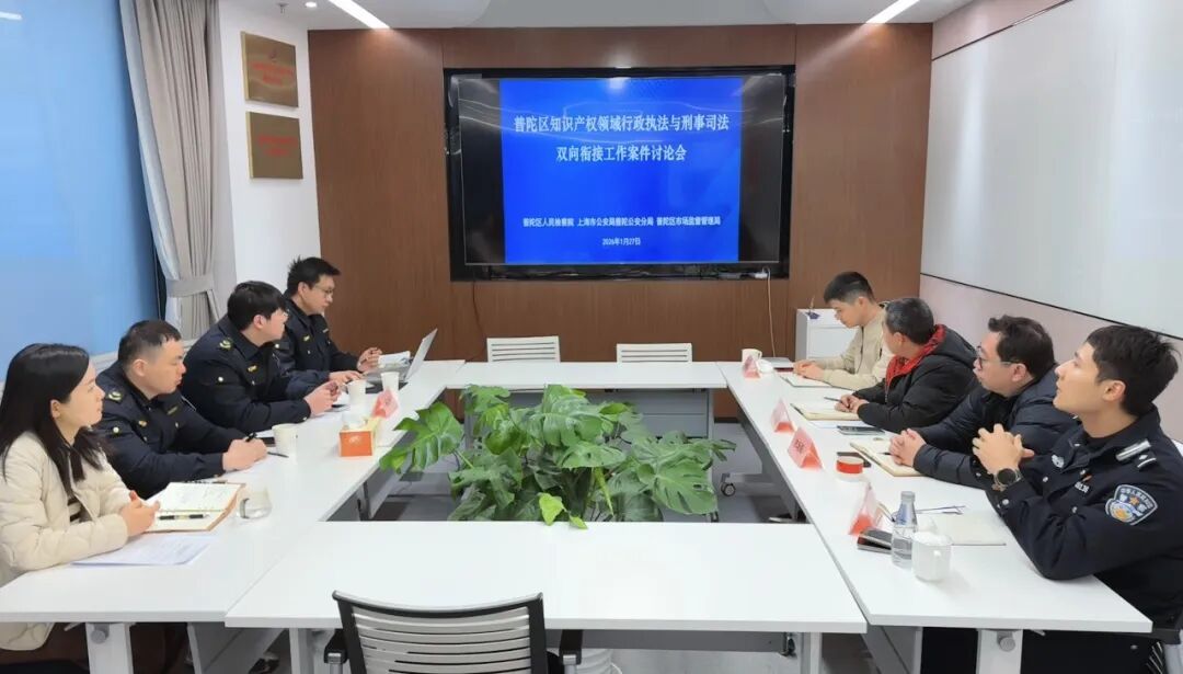 为深入贯彻落实《普陀区知识产权领域行政执法与刑事司法双向衔接工作实施办法》,持续提升“两法衔接”机制效能,1月27日,普陀区市场监管局(知识产权局)联合区检察院、区公安局召开专题研讨会,就一起品牌授权经销商涉嫌商标侵权案件开展协同研判。
