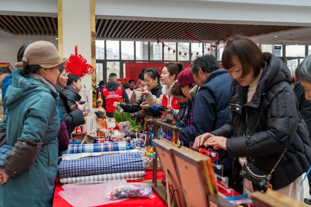 走进活动现场,浓浓的年味扑面而来。现场精心划分的年货、年味、年俗、非遗四大区域,宛如一个微缩的“新春市集”,吸引着男女老少驻足体验。
