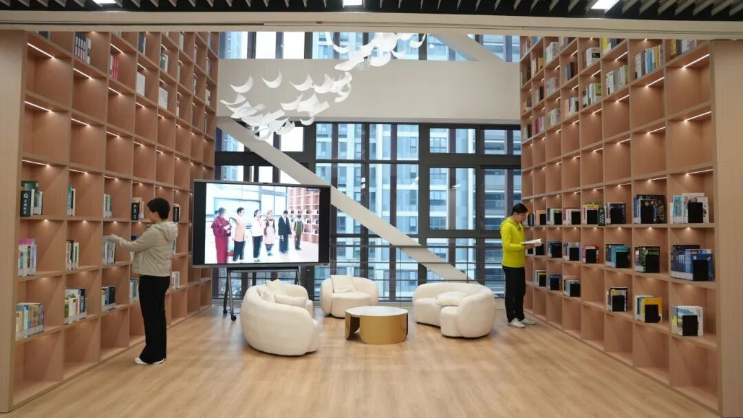 除了硬核的科创设施,校园里的各处也充满着智慧学校的温柔。智慧图书馆内,自助借还系统让借阅图书变得高效,降噪球形座椅可以给学生们提供一个安静读书的空间,多元化的座位布局适配不同阅读需求,充足的采光与温馨的布置,让沉浸式阅读成为一种享受。