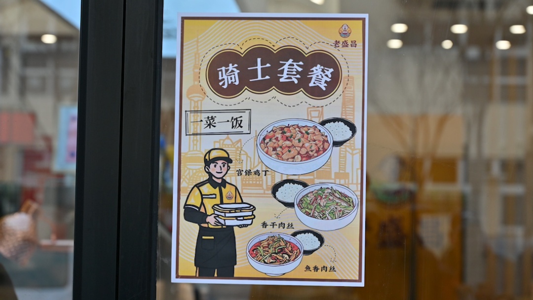 上午10点半,在春塔路上的老盛昌门店里,外卖员李先生正准备点餐。“你好,现在我们针对新就业群体有优惠套餐,这三款盖浇饭都是10元一份。”工作人员介绍。
