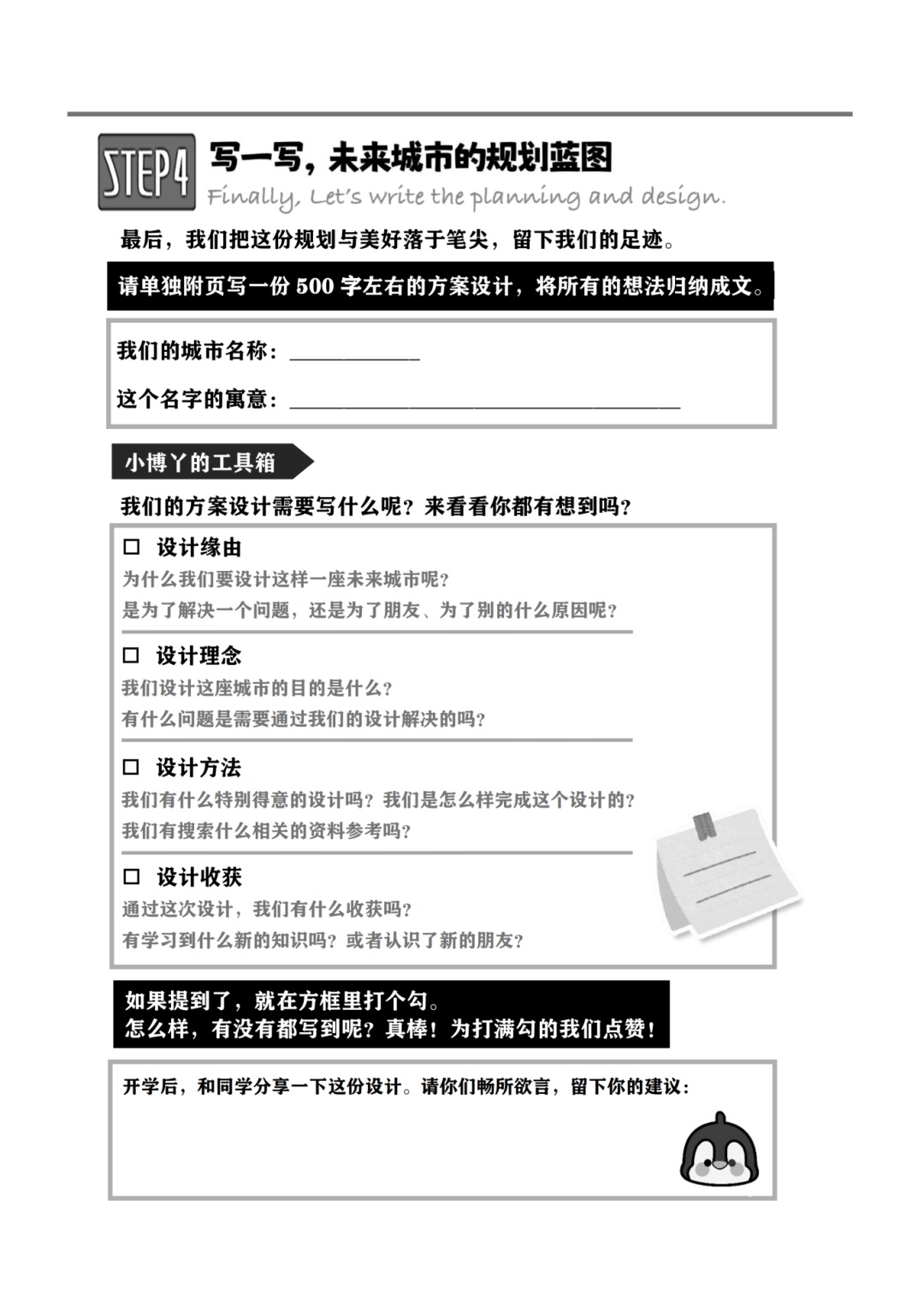 五年级学生将挑战“未来城市规划师”的工作,“大开脑洞”设计一座人和企鹅可以和谐共生的美好家园。
