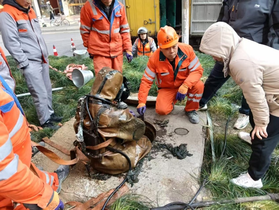 “管道通了,异味没了,住得更舒心了。”近日,经过多方努力,宝山区高境镇逸仙路1321弄的下水管道恢复畅通,解决了困扰居民的“堵心”难题。 逸仙路1321弄周边小区大多为建成时间较久的老小区,地下管网错综复杂且年久老化,入冬后低温导致污物和油脂凝固,易造成管道堵塞。前不久寒潮来袭,逸仙路1321弄高境物业管理处紧急上报,小区污水管网水位偏高,居民家中污水排放困难,严重影响了居民正常生活。 民生相关事,一刻不能等。高境镇规划建设和生态环境办公室在接到报告后,火速调度驻镇应急抢险单位宝山市政养护公司的抢险人员携带高压疏通车等专业设备第一时间赶赴现场进行排查处置。 “管网埋在地下,得先找准堵在哪儿!”面对周边管网复杂、管网水位偏高的不利状况,抢险队伍采用“人工精准清捞+专业设备疏通”方式,经过近一天的全面排查,最终锁定堵点位于小区下穿小吉浦河的污水倒虹管内。该倒虹管两岸接收井深达七八米,管内被污物及异物严重堵塞,高压冲水车冲洗等普通疏通方法难以奏效。 抢险指挥小组果断调整方案,紧急联系专业潜水排堵队伍进行支援。潜水人员不惧零下3℃的严寒,潜入七八米深的冰冷污水中探查,发现一根3米多长的PE管横亘在污水倒虹管内,导致固体污物堆积堵塞。 找准症结后,抢险队伍迅速调来三脚架葫芦吊等设备,成功将PE管从管网中清理移出,居民家中污水排放难题得到化解。 此次应急抢险,不仅打通了地下管网的“肠梗阻”,更畅通了服务群众的“最后一公里”。民生小事,皆是大事。下一步,高境镇将持续践行人民城市理念,从源头抓实管网治理与日常预防,以“服务零距离”切实解决居民生活中的愁心事、烦心事、堵心事,不断提升居民的安全感、获得感和幸福感。 携手守护管网畅通 共筑宜居水环境 排水设施的完好运行,离不开每一位居民的共同呵护。在此,向居民朋友发出倡议: 1. 水是生命之源,人体缺水会严重危及生命安全,日常节水是每个人的责任,上海属水质缺水型城市,需要每个人从生活点滴做起,节水、爱水、护水,珍惜来之不易的水资源。 2. 如果家中装修或遇排水不畅时,请及时咨询小区物业,规范布设污水管道,切勿将污水管私接雨水管网,避免污水入河污染自来水水源地。 3. 严格做好垃圾分类,切勿将垃圾随意排入下水管道;尤其冬季天寒地冻,餐厨废油脂排入管道易凝结挂壁,造成管网堵塞、家中反水,影响您的日常生活。 4. 发现私接乱接污水管道、向管网乱扔垃圾杂物等行为,请及时制止并向物业或相关部门报告,共同守护地下管网畅通。 地下管网通,则城市运转畅;人居环境好,则民生福祉增。排水设施的畅通,既离不开市政人员的默默坚守,更需要每一位居民的理解与支持。