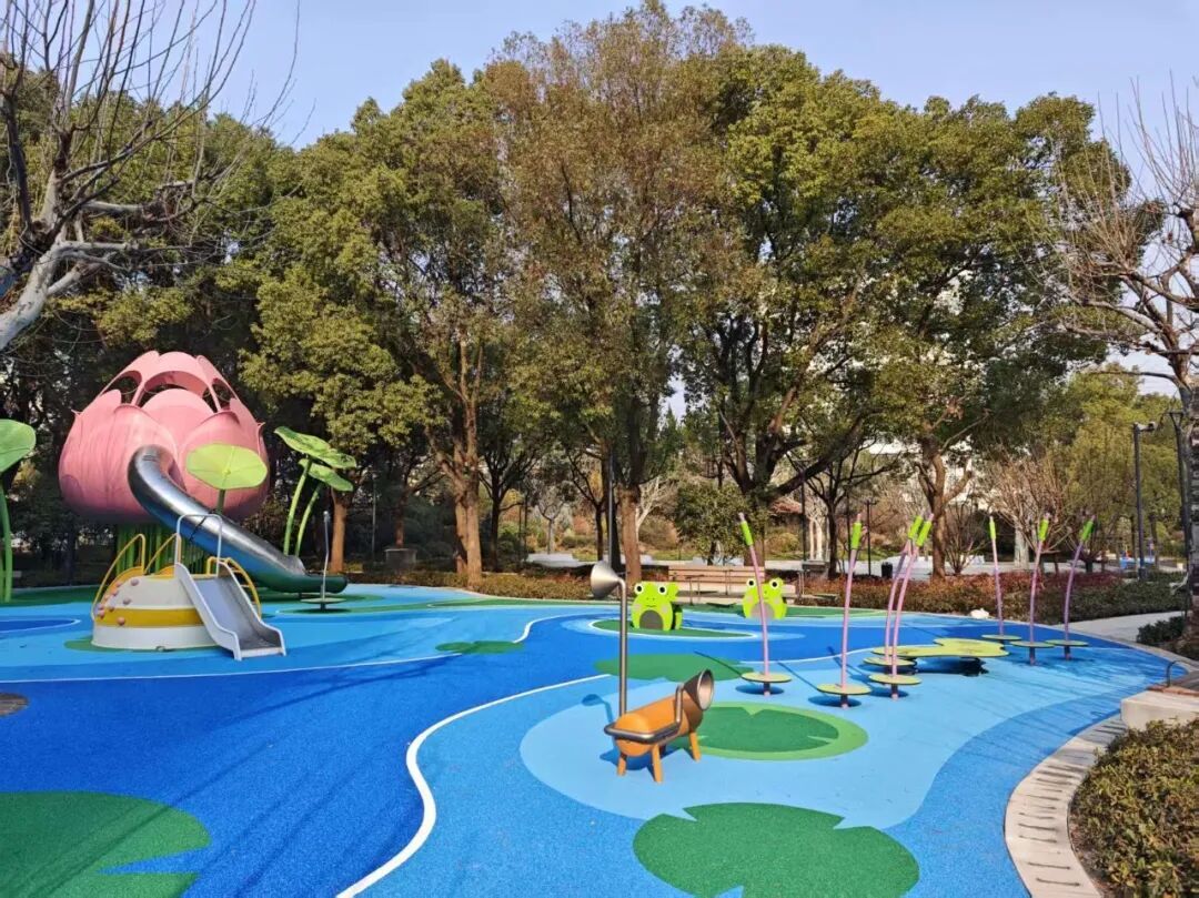 关注到“一老一小”的需求,园内新建了以“荷趣”为主题的儿童乐园,铺装模拟荡漾的荷塘水面,配以青蛙、荷叶、荷花等元素的无动力游乐设施,充满童趣。同时,全园实现了无障碍通道的连接,方便全龄段市民游客游园。