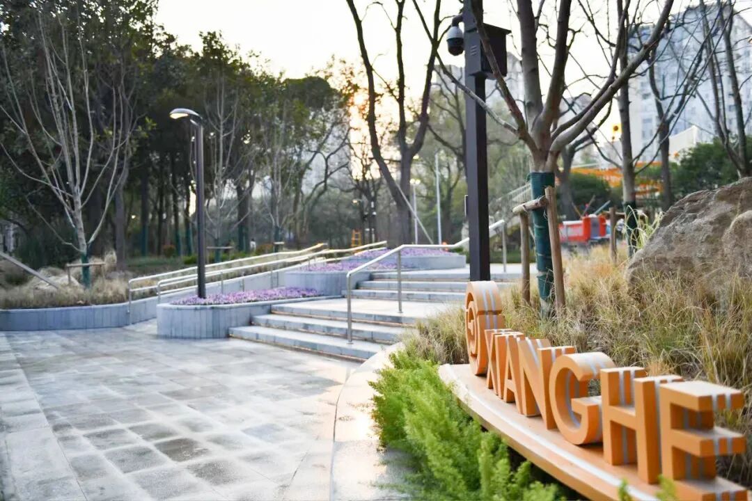 位于长征镇的祥和公园,也被重新“唤醒”与“优化”。祥和公园改造以“健康”和“全龄友好”为目标,延续了原有的“生机之源”主题雕塑这一精神轴线,并以此为核心,重新梳理出“一轴一源、两环四芯”的清晰空间结构。“一轴”即景观主轴,“一源”指“生机之源”雕塑,“两环”是满足健身需求的“森友漫步环”和适合静赏的“无界艺享环”,“四芯”则代表了四大功能区块:入口区的“元气之芯”、林下活动区的“秀木之芯”、滨水区的“蔚蓝之芯”以及活力运动区的“超燃之芯”。