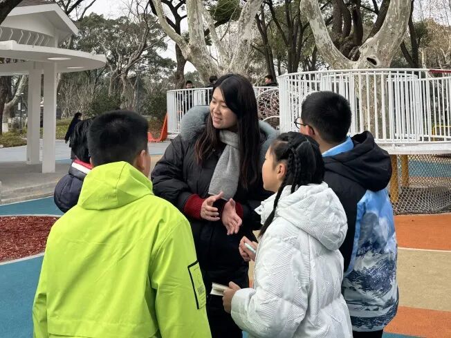 本次活动以一座拥有60多年历史的水磨石大象滑梯为情感纽带,引导青少年在行走中感知人民城市理念的生动实践。杨浦绿化管理事务中心的刘濛老师为小记者们讲述了“老象”的前世今生,以及“象素乐园”如何在保留集体记忆的基础上,融入无障碍设计、生态理念与本土文化元素,变身全龄友好、安全温馨的公共空间。