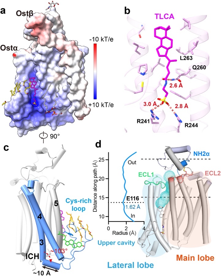 图2. Ostα/β侧向底物结合口袋及通道