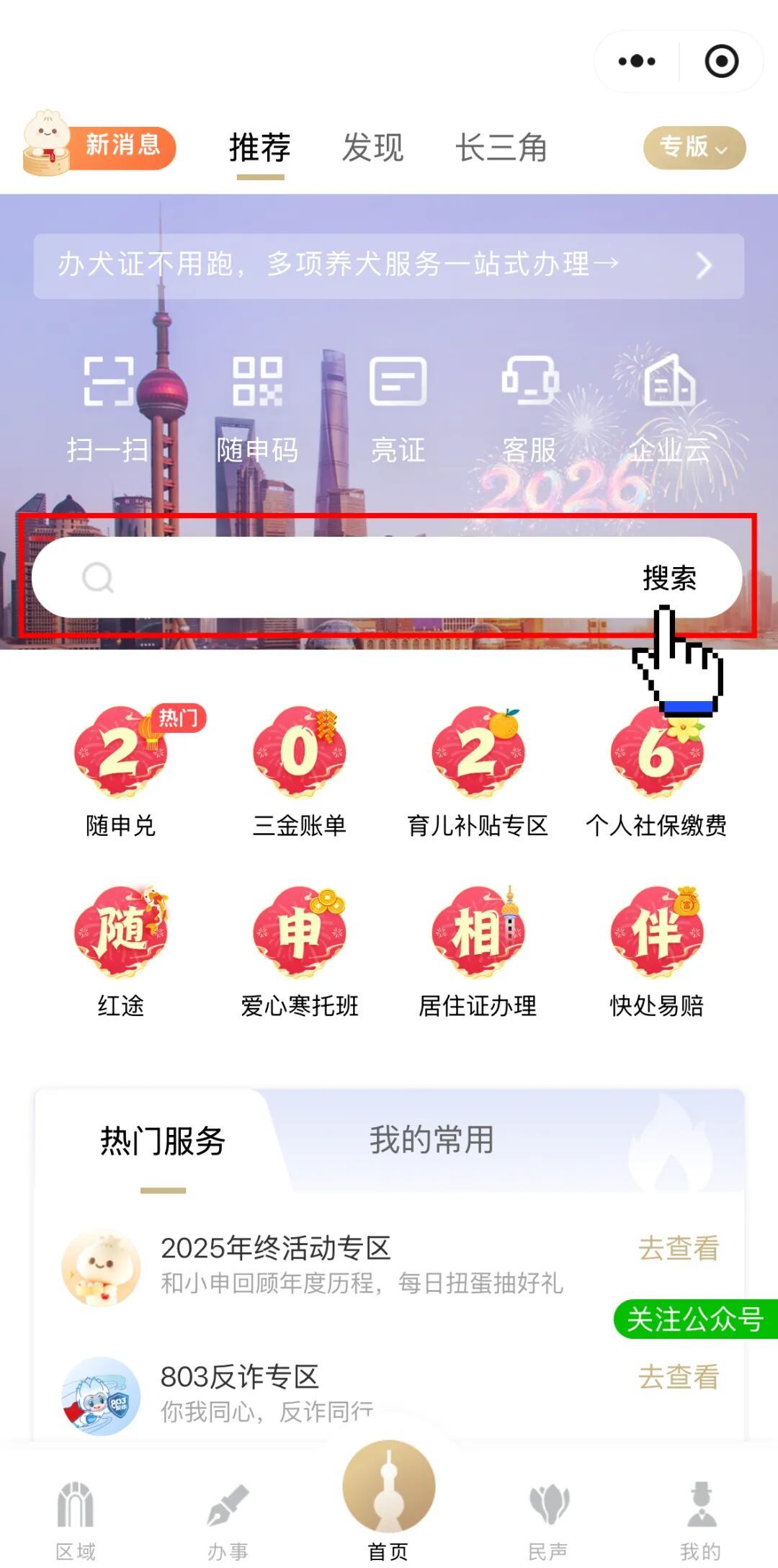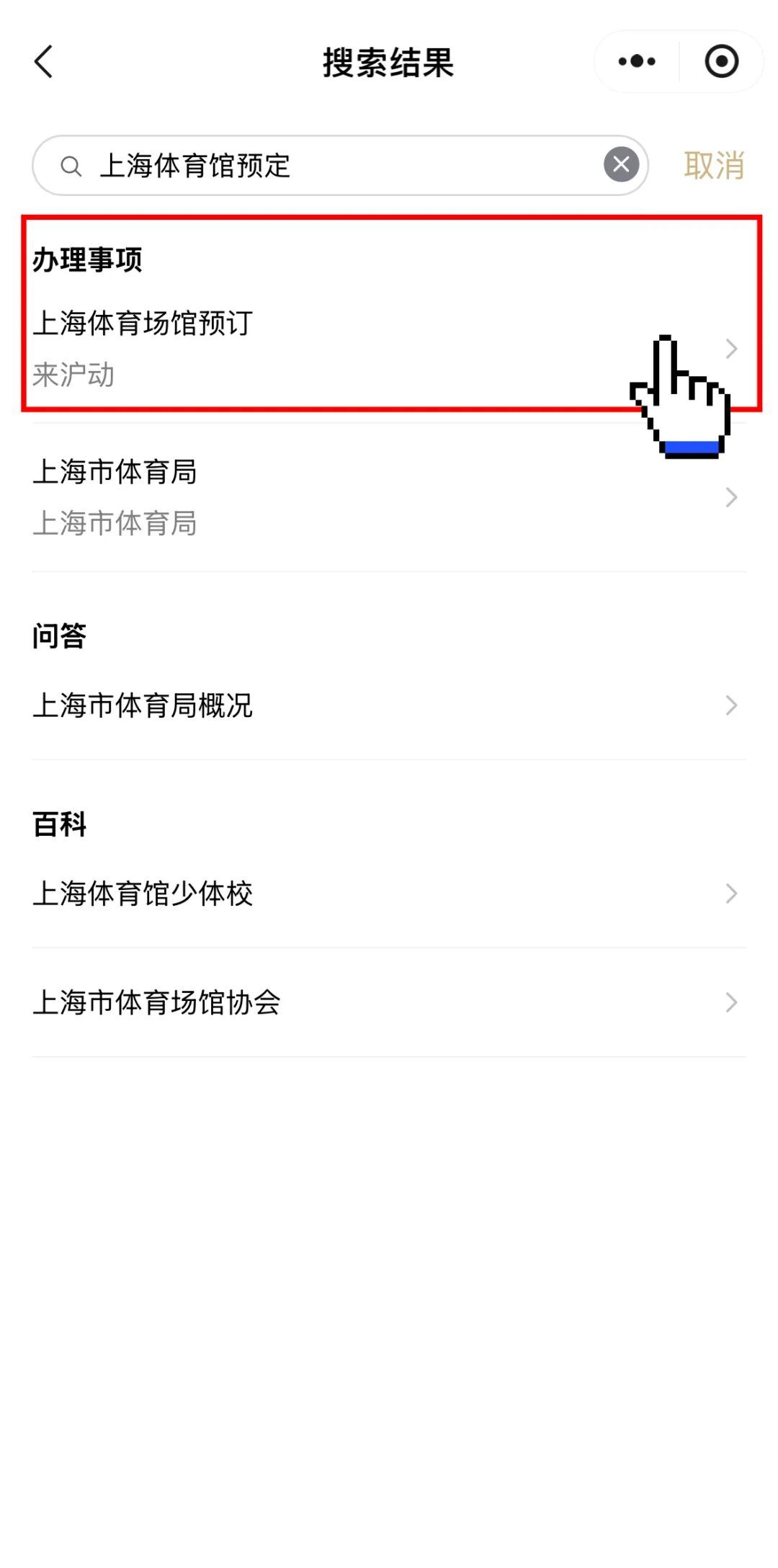 打开“随申办市民云”微信小程序,首页搜索进入“上海体育场馆预订”。