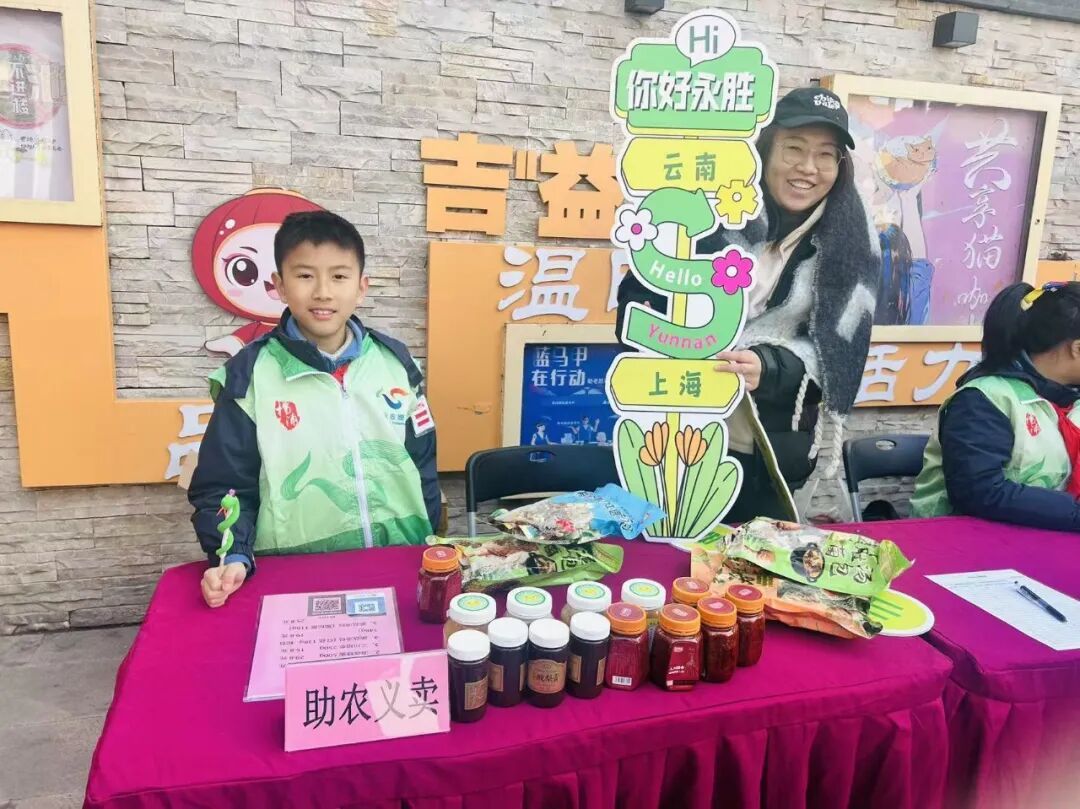 “我今天义卖的是云南特产,想把这些好东西推荐给邻居们。”一位学生志愿者一边递上产品,一边熟练地介绍,义卖所得将用于支持公益事业,以实际行动助力乡村振兴。