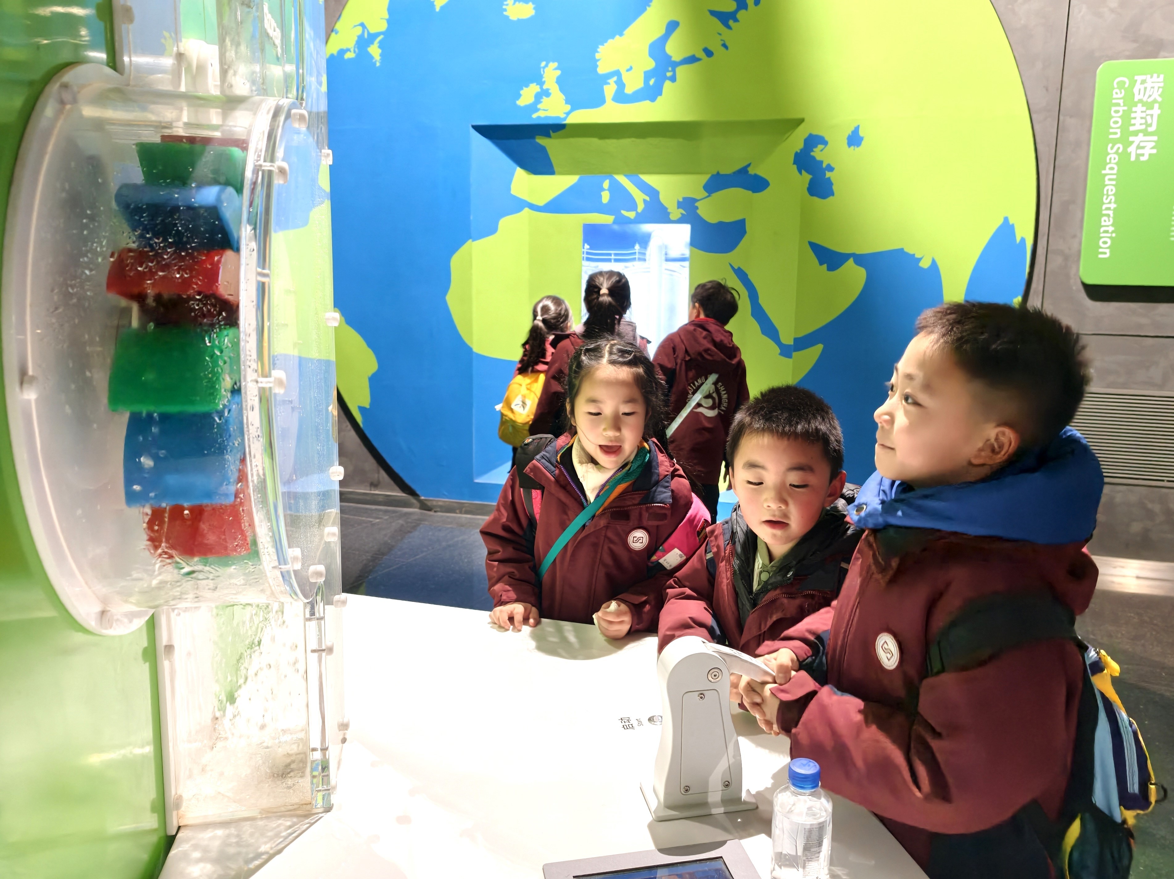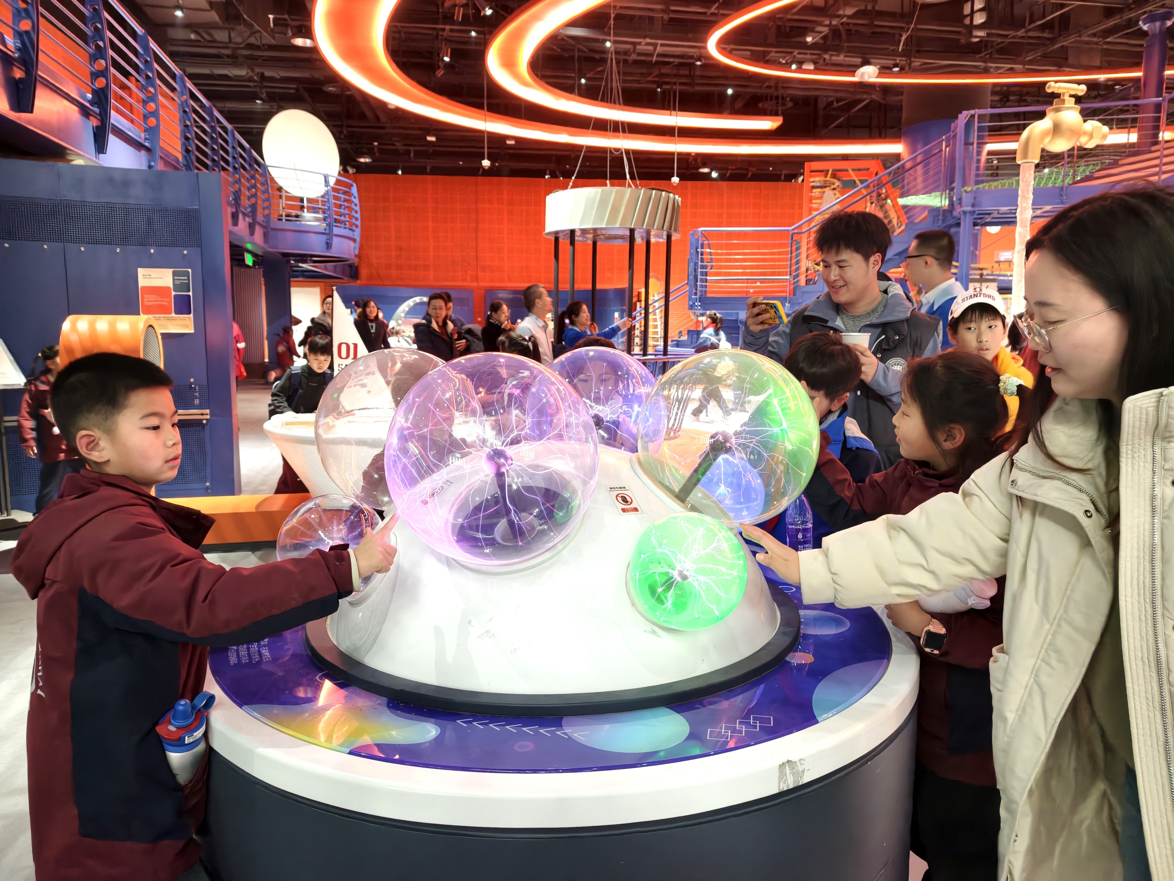 当天,在科技馆工作人员引导下,师生们走进“脱胎换骨”的科技馆,分组探索了“雨林秘境”“源动未来”“材料魔方”“智慧之光”“一米世界”等十大焕新常设展区。展区内,人工智能、量子科技、能源材料、航空生态等热点领域展项引人注目。