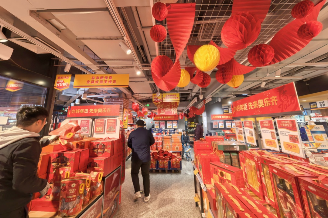 奥乐齐充分发挥贴近社区和商圈的优势,把年味搬到市民家门口,春节期间持续营业不打烊,运力充足,以质美价廉、省时省心的年货,保障社区居民吃好喝好的年节需求。
