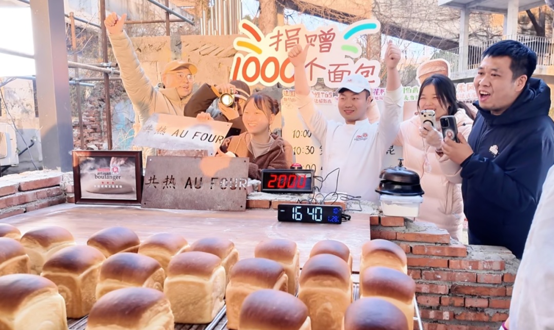 从上午10点整到下午4点40分,不到7个小时,原定连续8小时完成的2000个柴窑面包烘焙挑战提前告捷。其中,1000个现烤面包捐赠给坚守在园区一线的劳动者,用一份“刚出炉的温度”,为寒冬里的城市添上一抹暖色。