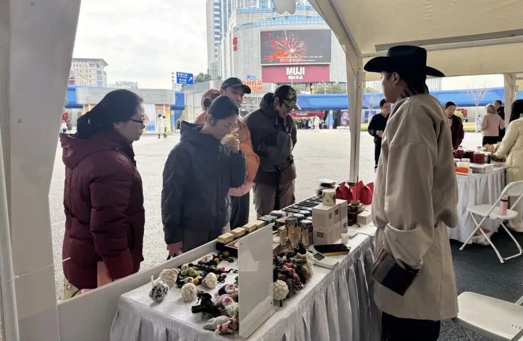 普洱陈香、新疆枣甜、花香蓝莓在空气中交织,扎染的蓝布玩偶,牦牛奶制手工皂吸引着市民驻足挑选……