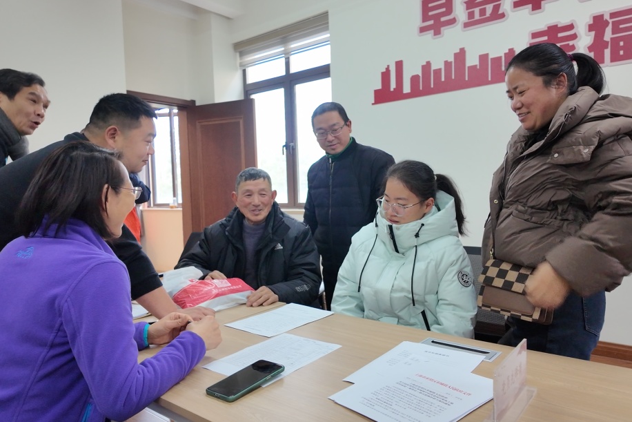 墙上“早签早领速签奖 幸福新居相守望”的标语醒目亮眼,4个签约室同步开放,居民们有序排队、拿号、等候,一张张签约回执交织着对老房的眷恋与对新家的向往,奉城镇“城中村”居民的安居圆梦之旅正式拉开序幕。