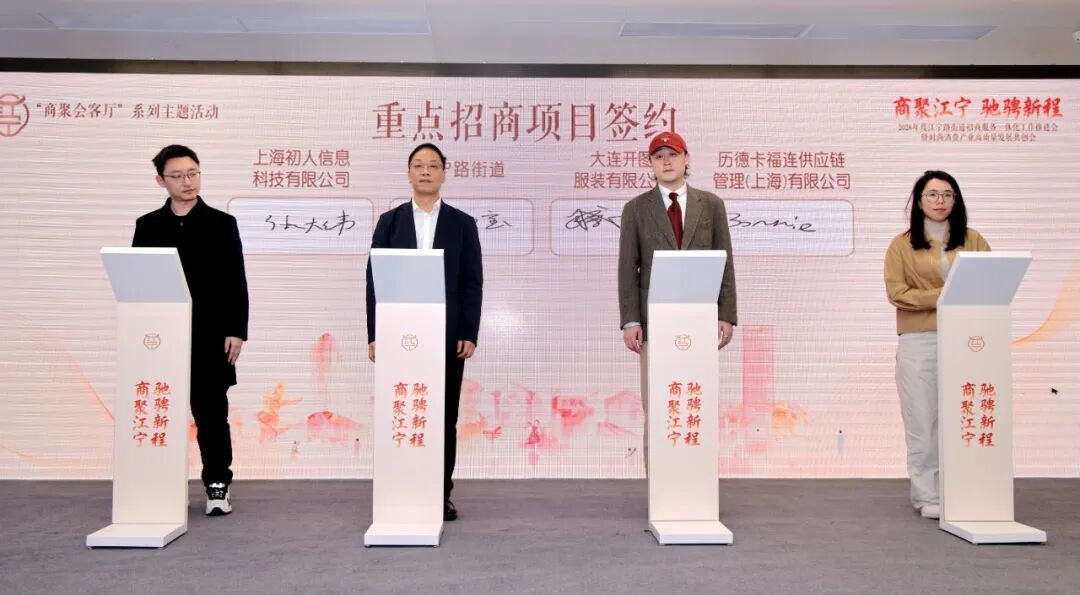 会上,江宁路街道负责人与新落户企业代表历德卡福连供应链管理(上海)有限公司、上海初人信息科技有限公司及大连开图服装有限公司现场签约。其中,大连开图男装品牌即将于今年上半年在南京西路商圈开设线下旗舰店,为静安时尚产业注入新活力。