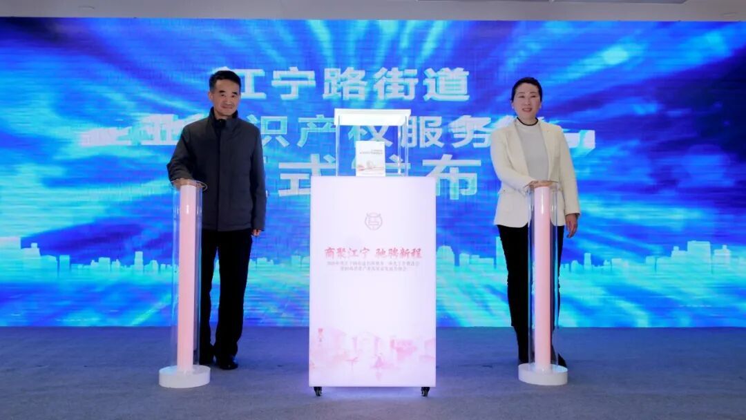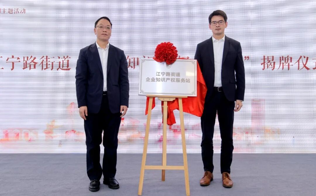 为更好激发市场创新活力,大会现场,胡勇与江宁路街道负责人共同为江宁路街道招商服务一体化分中心“企业知识产权服务站”揭牌。