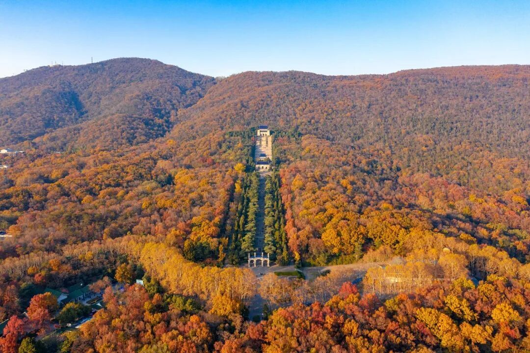 中山陵:览钟山好风光。来南京,一定要去中山陵!三百多级台阶通向青瓦白墙,漫步梧桐道吹着清风,登顶俯瞰钟山全景,氛围感直接拉满!