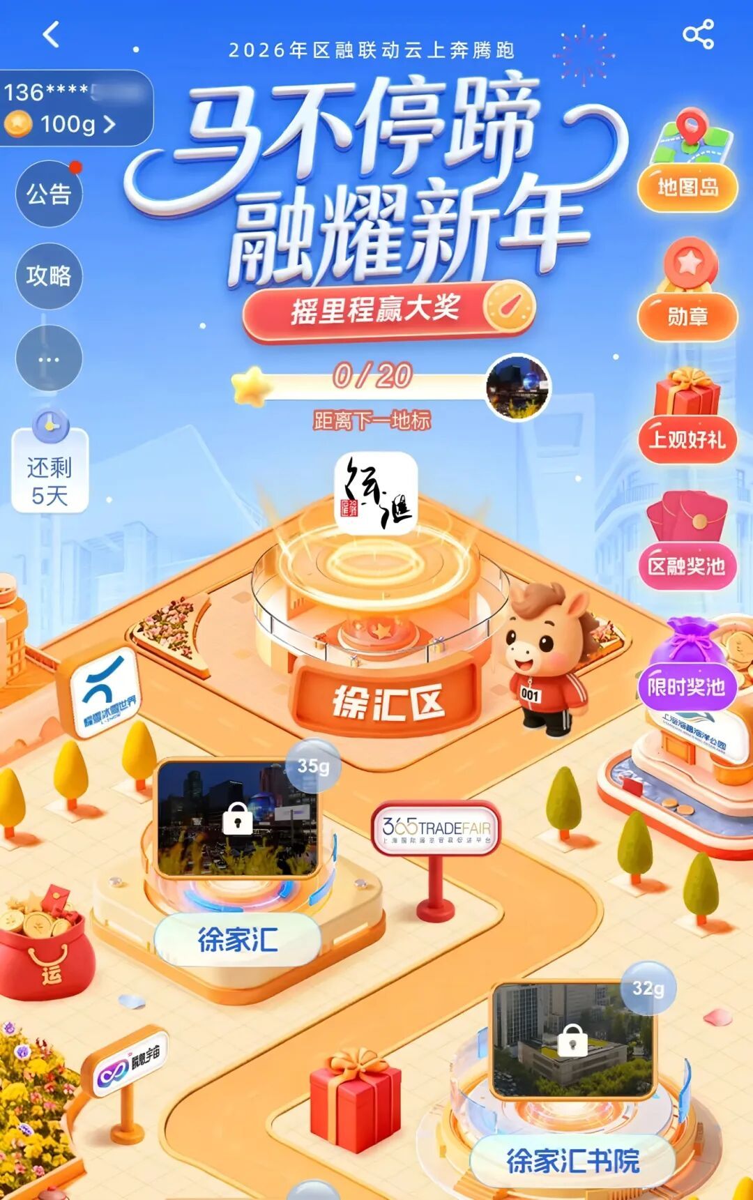 作为“马不停蹄·融耀新年”云上跑活动的重要一环,“徐汇通”App精心选取了一批具有代表性的城市节点纳入互动路径,并同步推出徐汇专属奖池,让城市探索与新春好礼温暖相遇。