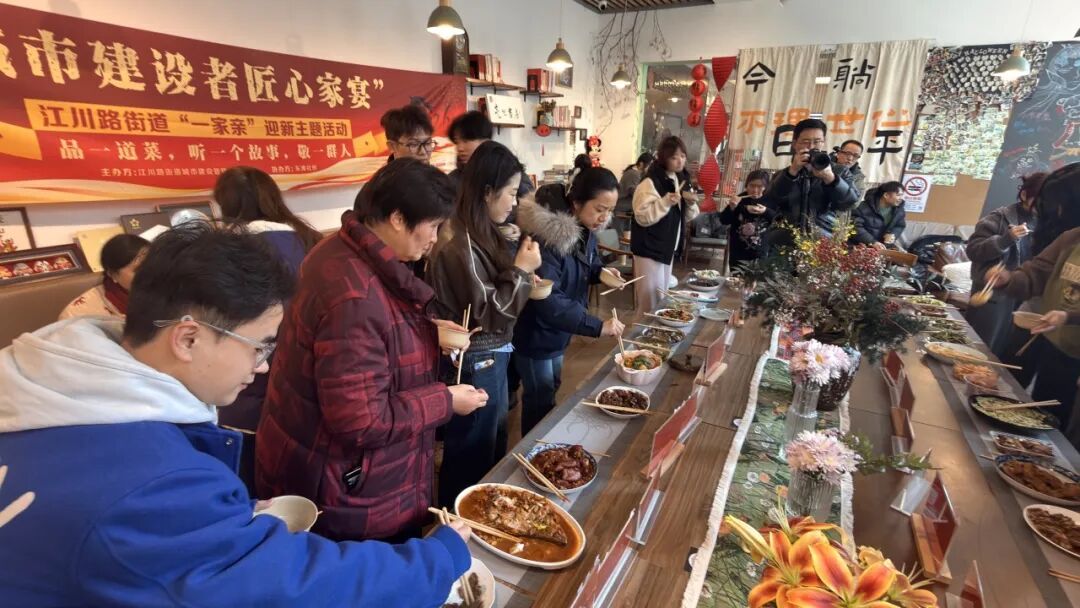 据了解,这场“匠心家宴”并非偶然之举,而是街道深化“城市建设者之家”服务内涵、推动建设者与社区深度融合的温暖实践。近年来,江川路街道始终聚焦城市建设者的需求,从工作保障、生活服务到情感关怀,不断完善服务举措,搭建交流平台,努力让每一位为辖区发展挥洒汗水的建设者都能感受到归属感。