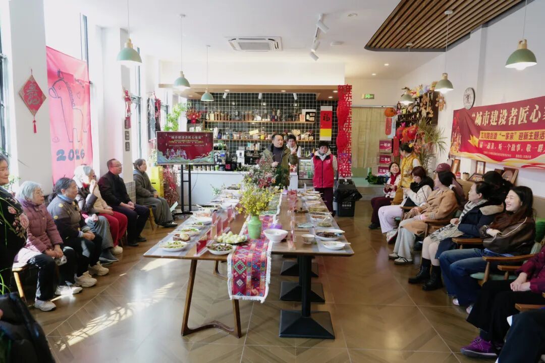 本次活动由江川路街道城市建设管理中心主办,河东居民区党群服务站精心承办,以“品一道菜,听一个故事,敬一群人”为核心,邀请了居住在河东科创港湾公寓内重点企业职工、医护人员、社区工作者等不同群体的城市建设者代表,以及热心居民代表齐聚一堂,在城市的烟火气中拉近彼此距离,共赴一场温暖之约。